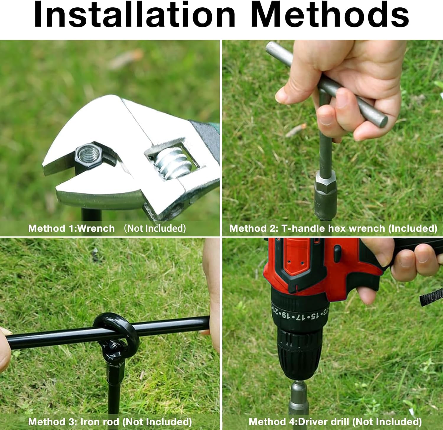 • 【Easy to install】- Use the anchor and drilling rig together, simply connect the power nut screwdriver head to the drilling rig to easily complete the installation. It can also be used together with the matching hex wrench. By selecting the appropriate position and simply rotating it, it is easy to drill into the soil and quickly fix it on the ground.