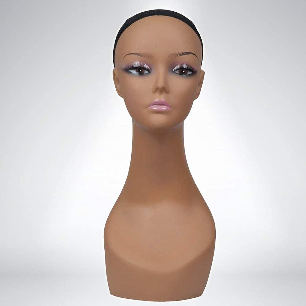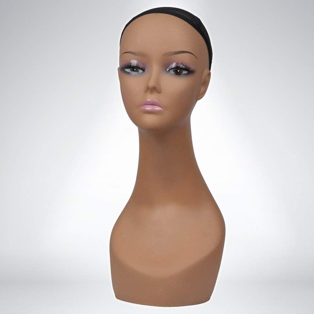 Display your merchandise in style with this high-quality 18″ life-size female mannequin head from our trusted line. Designed for wig makers, salons, e-commerce sellers, and accessory retailers, this display bust features a realistic face with applied make-up, eyelashes, a graceful neck, and a full shoulder-chest area for a refined look. Made of durable plastic with a netted wig cap built in, it supports wigs, hats, sunglasses, and jewelry with ease—giving your products the premium presentation they deserve. Whether you’re styling wigs, photographing product listings, dressing up retail shelves, or showcasing accessories at a trade show, this mannequin head brings professional polish. The base includes an anti-friction fabric pad to protect surfaces; you also have the option to convert the base for mounting on a display stand. Lightweight yet sturdy at ~3 lb, it’s easy to move yet stable enough for everyday use. Not just a tool, this display piece is a visual asset. The realistic features and full bust design elevate your presentation and help customers visualize real-life use. From hats and sunglasses to earrings, necklaces, headphones or scarves — this display solution covers your entire accessory range. We stand behind the product with dedicated customer service and support your success in every sale.