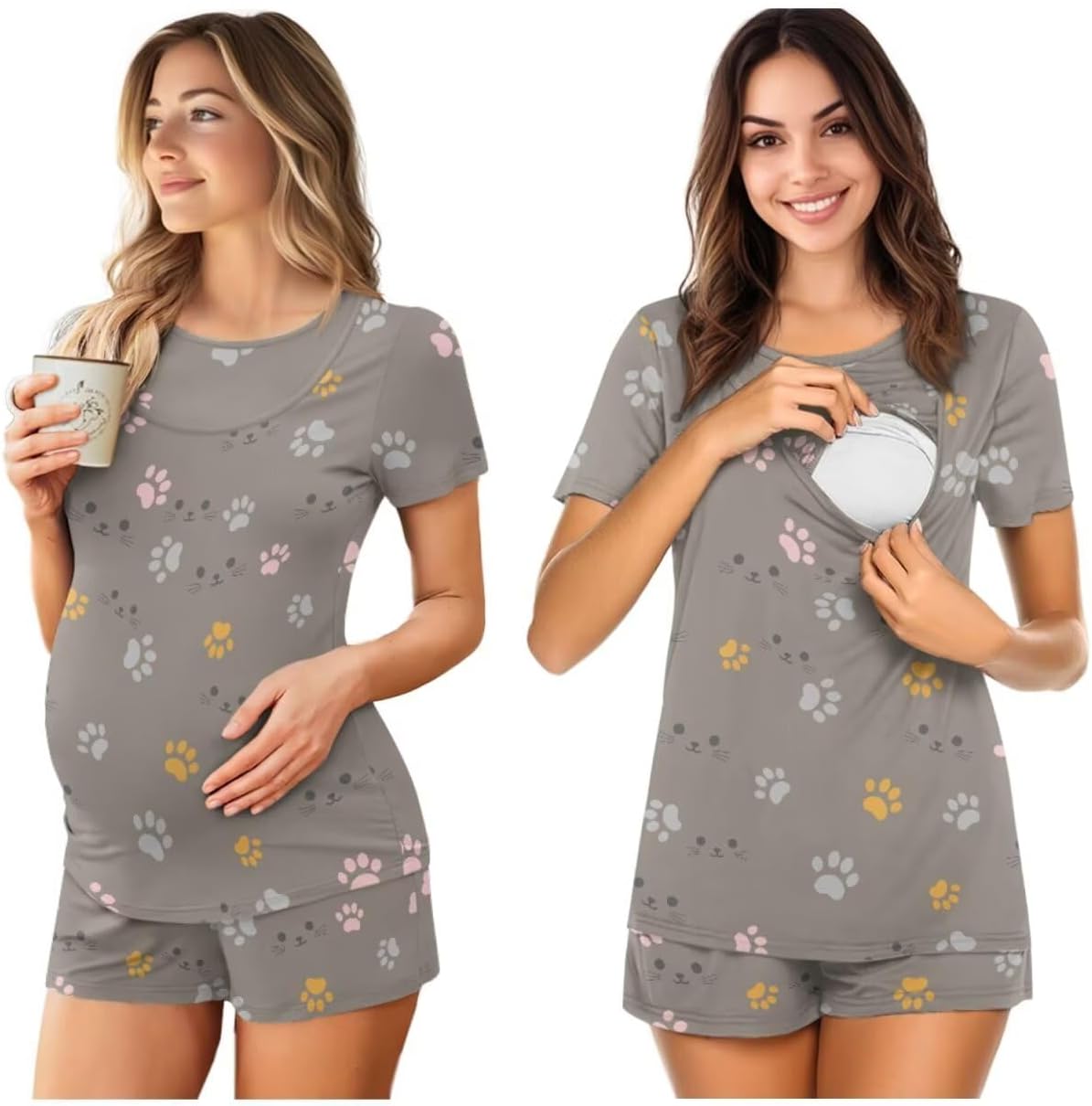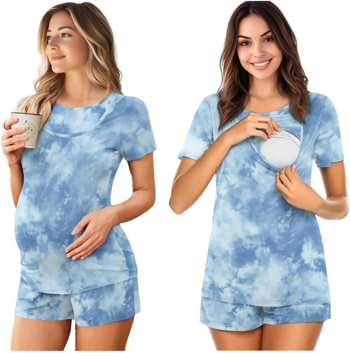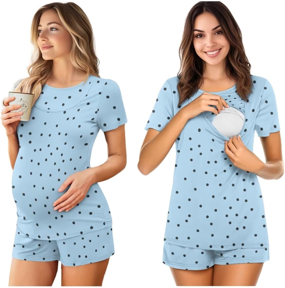 Estuaferng Maternity Nursing Pajamas:The breastfeeding pajamas is made of quality fabric. Breathable, skin friendly, stretchy and soft. Super soft and comfortable for maternity/pregnancy/postpartum/nursing/breastfeeding moms. Convenient for Breastfeeding:The top features a concealed breastfeeding opening that can be operated with one hand, allowing mothers to breastfeed at any time without the hassle of changing clothes, making parenting life easier. The simple and elegant cutting design can be used as comfortable pajamas or fashionable home clothes, meeting the mother's various needs for breastfeeding, resting and home activities. Maternity pajama sets are suitable for different stages such as pregnancy, delivery and postpartum. It can be used as nursing clothes after delivery, and also suitable for daily casual wear/hospital wear/nursing pajamas. It is a great gift for your pregnant wife, sister, family or friends. If you have any problem please contact us , we will reply you within 24 hours!