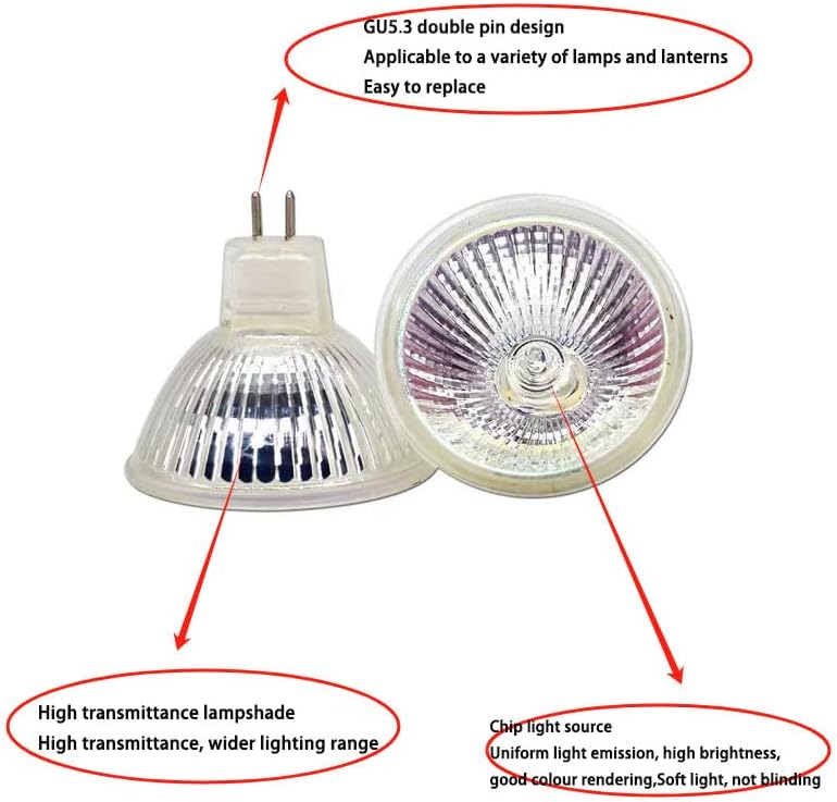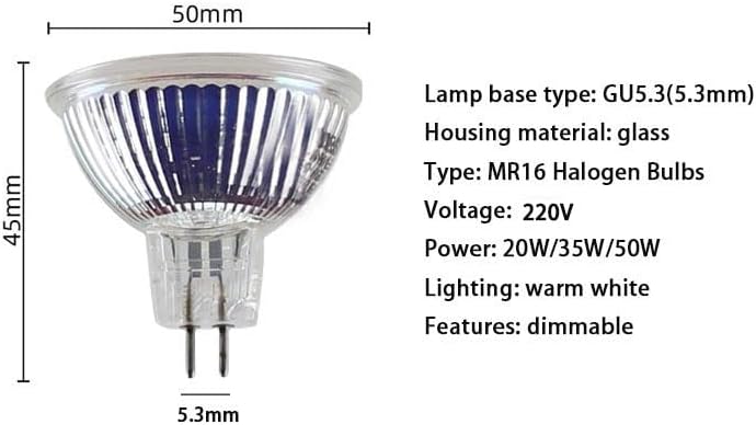MR16 GU5.3 Halogen Light Bulbs, suitable for downlight, spotlight, track light, landscape light, ceiling light, recessed light, accent lightHigh brightness and low power consumption, save electricity, long service life, reduce the trouble and cost of frequent replacement of lampsAn environmentally friendly option that saves energy while providing effective and precise lightingLight spreads to a larger area and is brighter, creating a comfortable and bright environmentMR16 Halogen Bulbs dimmable, instant start, no delay, colour rendering index>80. no strobe, no UV radiation, better protect your eyes