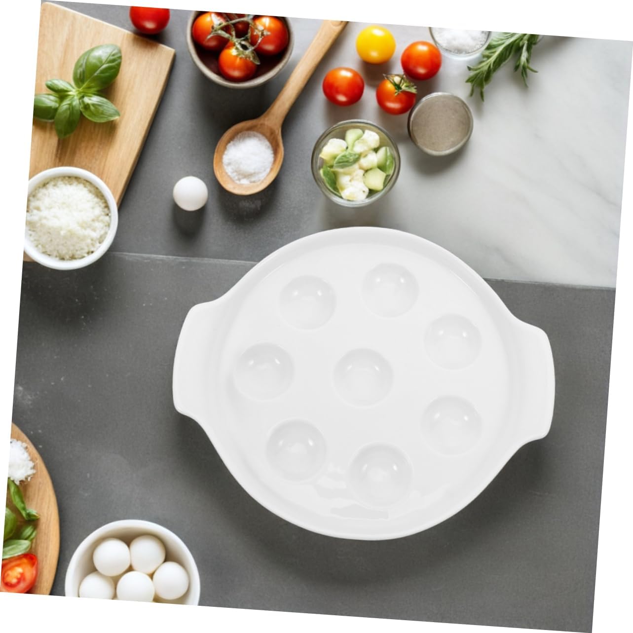 Package List 1 x 9in French baked snail dish with 8 hole 1 x 6.8in French baked snail dish with 6 hole Characteristics -Elegant dining experience: elevate your dining experience with this beautifully crafted escargot dish, making every meal a special occasion porcelain escargot plate -Easy to Clean: The smooth, non-stick ceramic surface makes cleaning a breeze, either by hand or in the dishwasher seafood barbecue dish -Size:23.00X20.00X2.50cm/9.04X7.86X0.98in ceramic escargot dish -strong ceramic material: made from hardwearing ceramic, this dish is safe, , and can withstand high temperatures, ensuring your food remains healthy ceramic seafood dish -Color:White footed ceramic snail plate -Size:17.30X14.50X2.50cm/6.80X5.70X0.98in escargot serving dish -Material:Ceramics ceramic escargot plates -great for gatherings: ideal for family dinners, parties, and special occasions, this dish adds a sophisticated touch to any dining setting mushroom serving platter - preparation: simplify your cooking process with this easytouse platter, allowing you to prepare delicious escargot quickly and efficiently escargot baking dishGoods Informationwhite escargot serving plate The dish's design allows for even cooking and easy serving, ensuring your escargot is always well prepared.oven safe seafood dish Its elegant look adds a touch of sophistication to any meal.ceramic seafood platter Elevate your seafood dining with this ceramic escargot baking dish, great for both home kitchens and professional restaurants