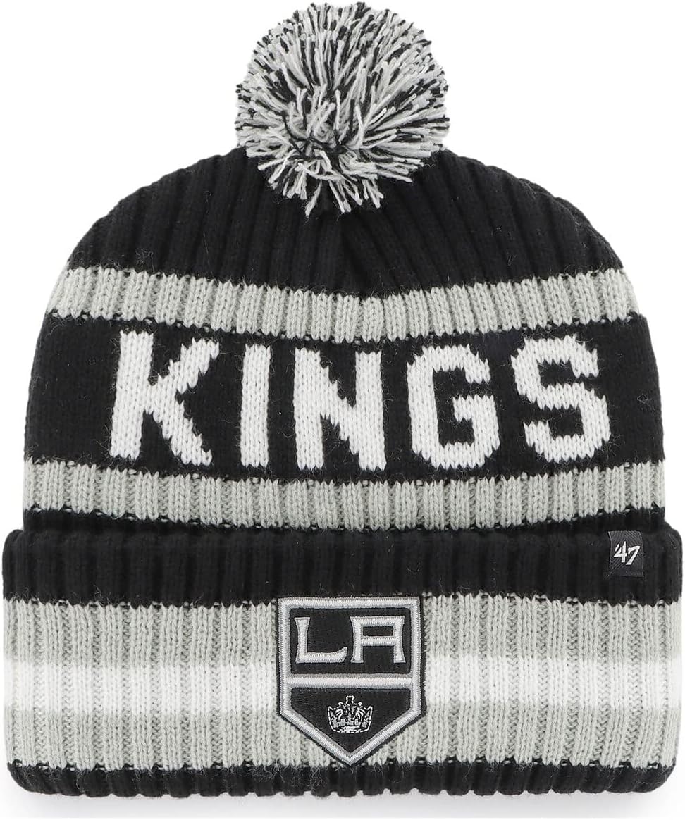 The Bering '47 CUFF KNIT is made from soft and warm acrylic yarns and microfleece with text jacquard, raised front embroidery, and a pom on top.