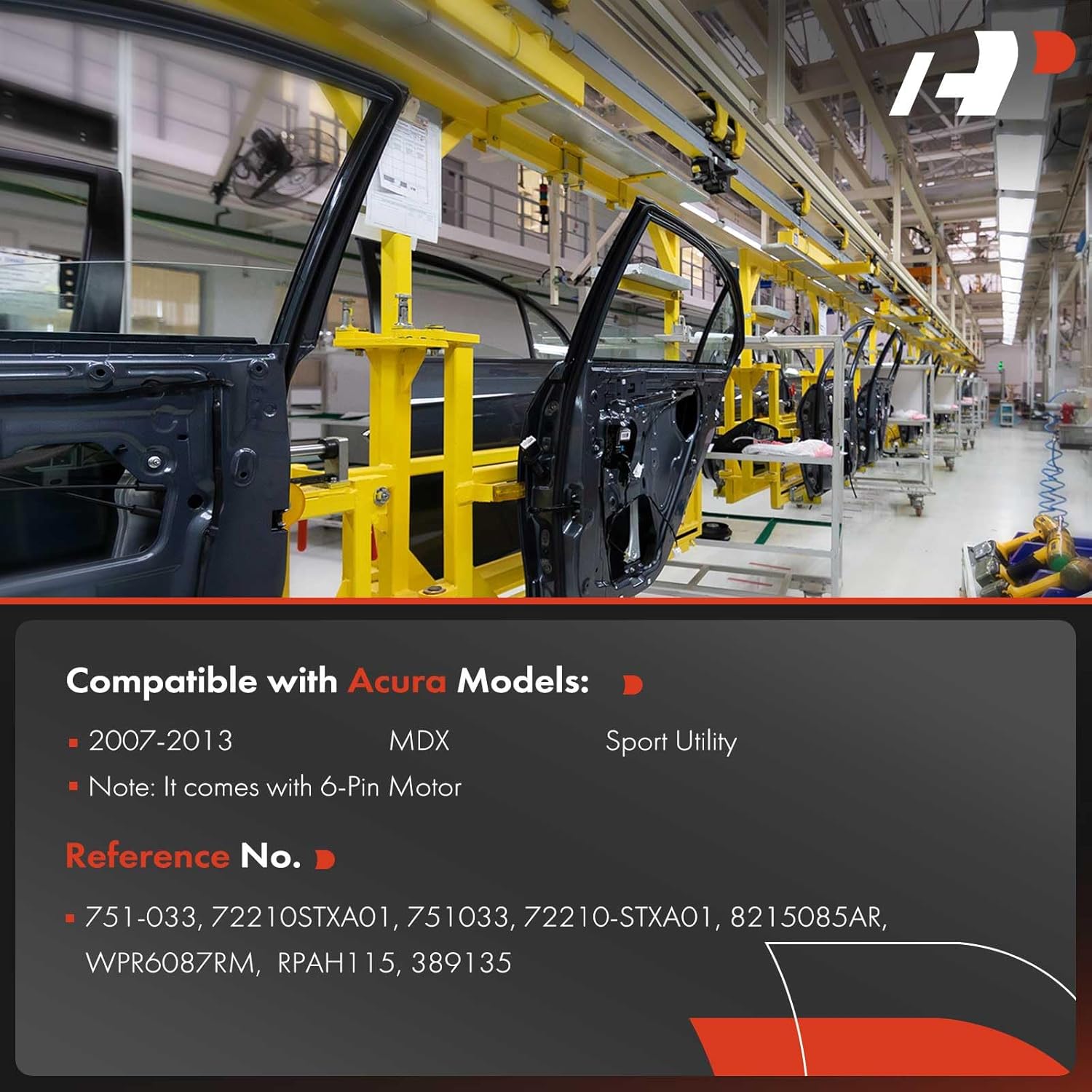 | Model Name | Power Window Regulator with Motor Compatible with Acura MDX 2007-2013 Sport Utility, Front Right Passenger Side |