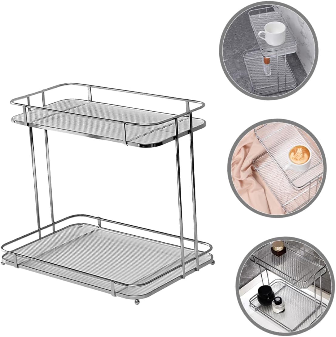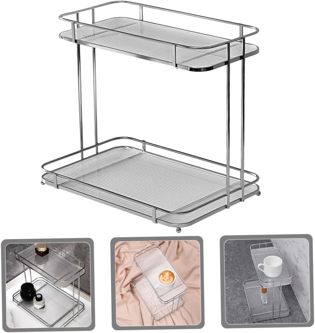 Package Include 1 × Rack Characteristics -Material:Acrylic, iron Bathroom Cosmetics Holder -Product Info:Double-layer storage rack -Size:29.00X25.50X19.00cm/11.40X10.02X7.47in counter organizer for bathroom -Color:Silver bathroom countertop organizers - This display shelf has two layers, very simple to install, very practical to use, bring convenience to your life Countertop Storage Shelf. - This storage rack is made of acrylic, iron materials, which is not easy to deform, has strong bearing capacity and can be used for a long time shelves for bathroom. - It is designed into a rectangle shape, which is perfect for placing in the corner of the kitchen and bathroom countertop organizer for bathroom counter. - The base board of the bathroom countertop organizer can be disassembled, which makes it very convenient to clean and install bathroom countertop organizer. - The storage rack has more storage space, can be installed easily, and can be placed in other places according to your needs cosmetics organizer.Goods Descriptioncorner countertop organizer It has a reasonable double-layers design and practical functions, can play a nice storage and organization effect, convenient for you to find and sort items faster.Toiletry Storage Rack Detailed workmanship, not easy to deform or damage, can well meet your needs and your quality of life.bathroom organizer This is a desktop storage rack made of acrylic, iron materials