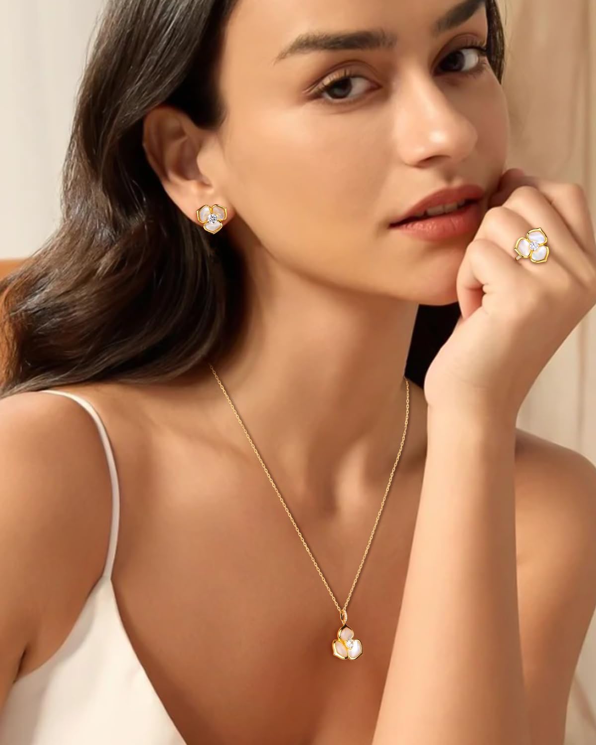 | Gem Type | Cubic Zirconia, Mother of Pearl |