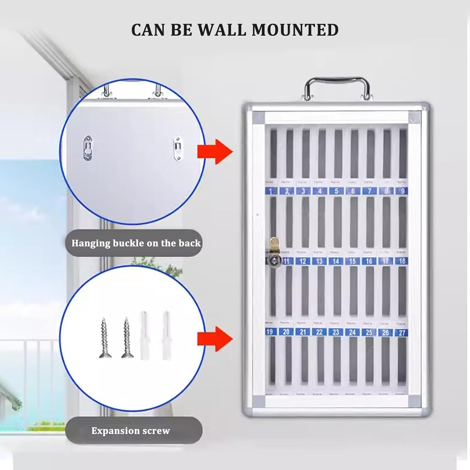 Freestanding Metal Phone Safe Deposit Organizer Box:This aluminum alloy cell phone cabinet is a versatile solution designed for various environments such as conference rooms, classrooms, factory workshops, and gyms. With its sleek silver finish, this cabinet not only provides a modern look but also ensures the safety and organization of your devices. **Product Name:** Aluminum Alloy Cell Phone Cabinet **Material:** Crafted from durable aluminum alloy, glass, EVA cotton, and pearl cotton, this cabinet is built to withstand daily use while maintaining its aesthetic appeal. **Size Options:** Available in sizes of 8, 12, 24, 36, 48, and 60 compartments to accommodate your specific needs. **Key Features:** 1. **Portability & Wall-Mountable:** This cabinet can be easily mounted on walls or transported, making it ideal for any setting. 2. **Security Lock:** Equipped with a reliable security lock, it ensures that your devices remain safe and secure. 3. **Numbered Compartments:** Each compartment is clearly numbered, allowing for quick and easy access to your phone when needed. **Ideal Usage Scenarios:** Whether in a busy meeting room, an active classroom, a bustling factory workshop, or a dynamic gym, this cell phone cabinet is designed to enhance organization and efficiency. **Important Notes:** - The listing includes only one cell phone cabinet and its accessories; no other items are included. - Please allow for a 1-2CM measurement variance due to manual measurement practices. - Actual product colors may vary slightly from images due to lighting and shooting conditions. Invest in this aluminum alloy cell phone cabinet to streamline device management in your space, providing both functionality and peace of mind.