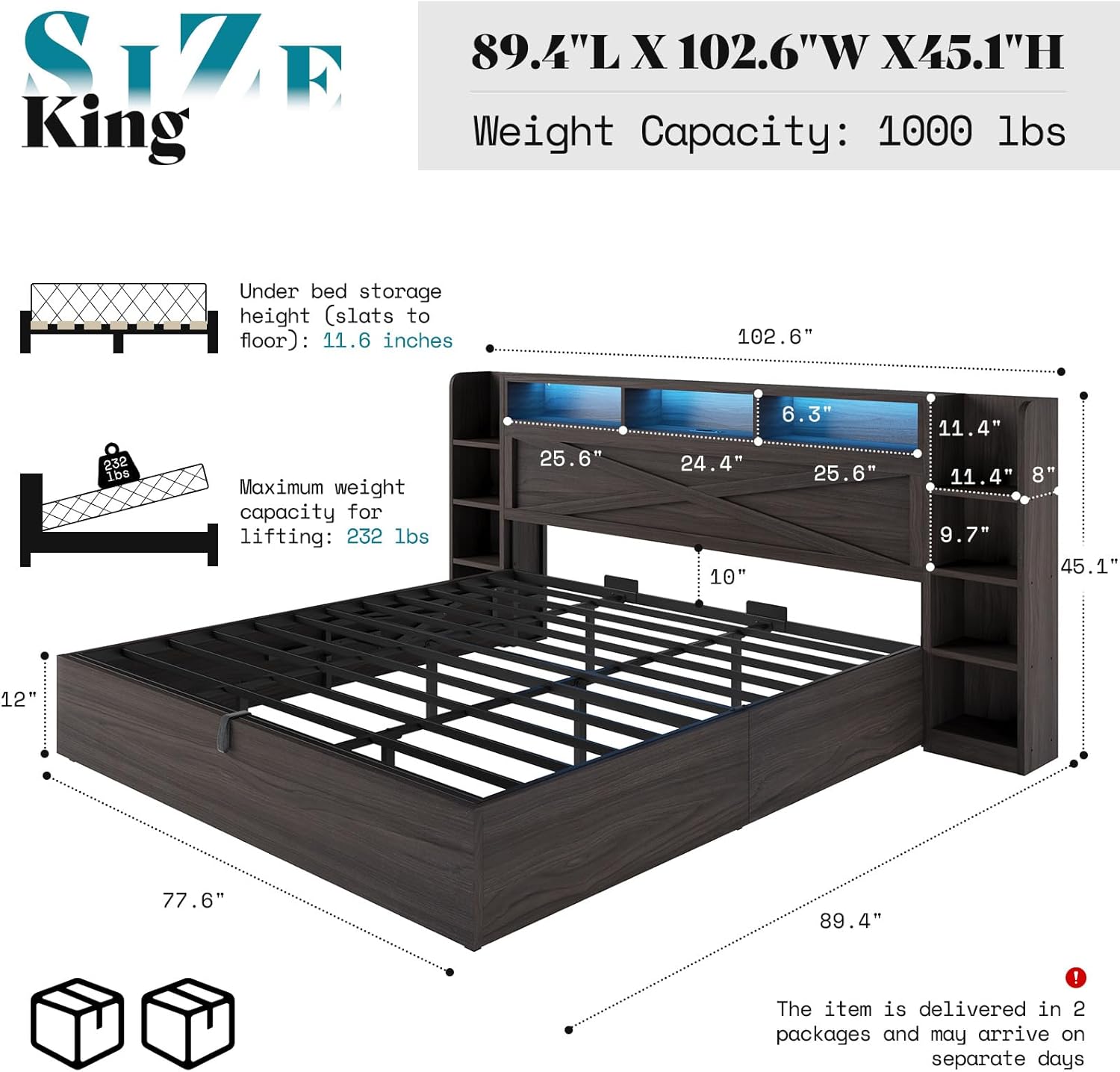 | Other Special Features of the Product | 2 4-tier Side Shelves, Charging Station, Lift Up Bed Frame, Lighted |