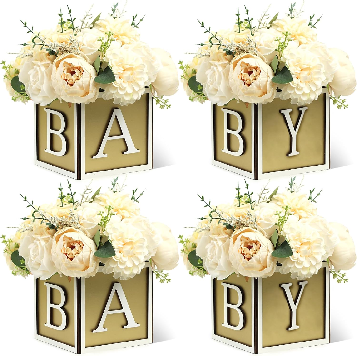 Features: Going beyond their original purpose, these table decorations for baby shower offer a range of uses. From serving as a centerpiece in your events at home, dorms, offices to being thoughtful gifts to wood box lovers, they seamlessly fill different roles. Offering 4 pieces of delightful baby shower table decorations embodied in the cute 3D BABY letters, it makes for an emotional and meaningful gift. Gifting these to someone special showcases not only your trendy choice, but also your considerate nature, making this an unbeatable gift option. You can send this wooden box to people who needs to have a baby shower, such as your family members, friends, neighbors, relatives and so on, to show your love and care. They will be very happy for your kindness. And your relationships will be promoted. Specifications: Material: wood Color: blue, pink, gold Size: about 6 x 6 x 6 inches Package includes: 4 x wooden boxes Notes: Warmly noted, the products have no lids or linings. Products need to be assembled. It is advisable that you check the size carefully before ordering. Manual measurement, please allow slight errors on size. The color may exist a slight difference due to different screen displays.