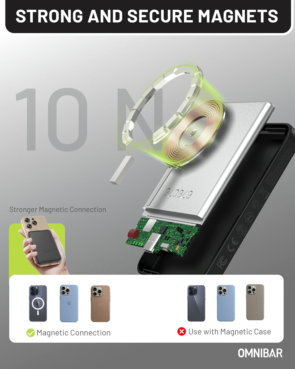 Back to School Savings 2025. A sleek, ultra-slim 0.5″ magnetic power bank designed for seamless MagSafe-style attachment on iPhone 12–16 series. With 5 000 mAh capacity and 20 W USB‑C PD fast charging, it powers your iPhone to ~50 % in just 30 minutes—plus 7.5 W wireless charging for cable-free convenience. Weighing around 4 oz (≈113 g) and pocket-friendly, it includes intelligent safety features like overheating and short‑circuit protection. Perfectly balanced for daily carry or travel. 240 W USB‑C to USB‑C Fast Charging Cable (6 ft, Nylon Braided, Black) - Stay powered across all your devices with this ultra-durable, high-speed USB‑C cable. Perfect for anyone needing premium speed, reliability, and peace of mind—power your world with confidence.