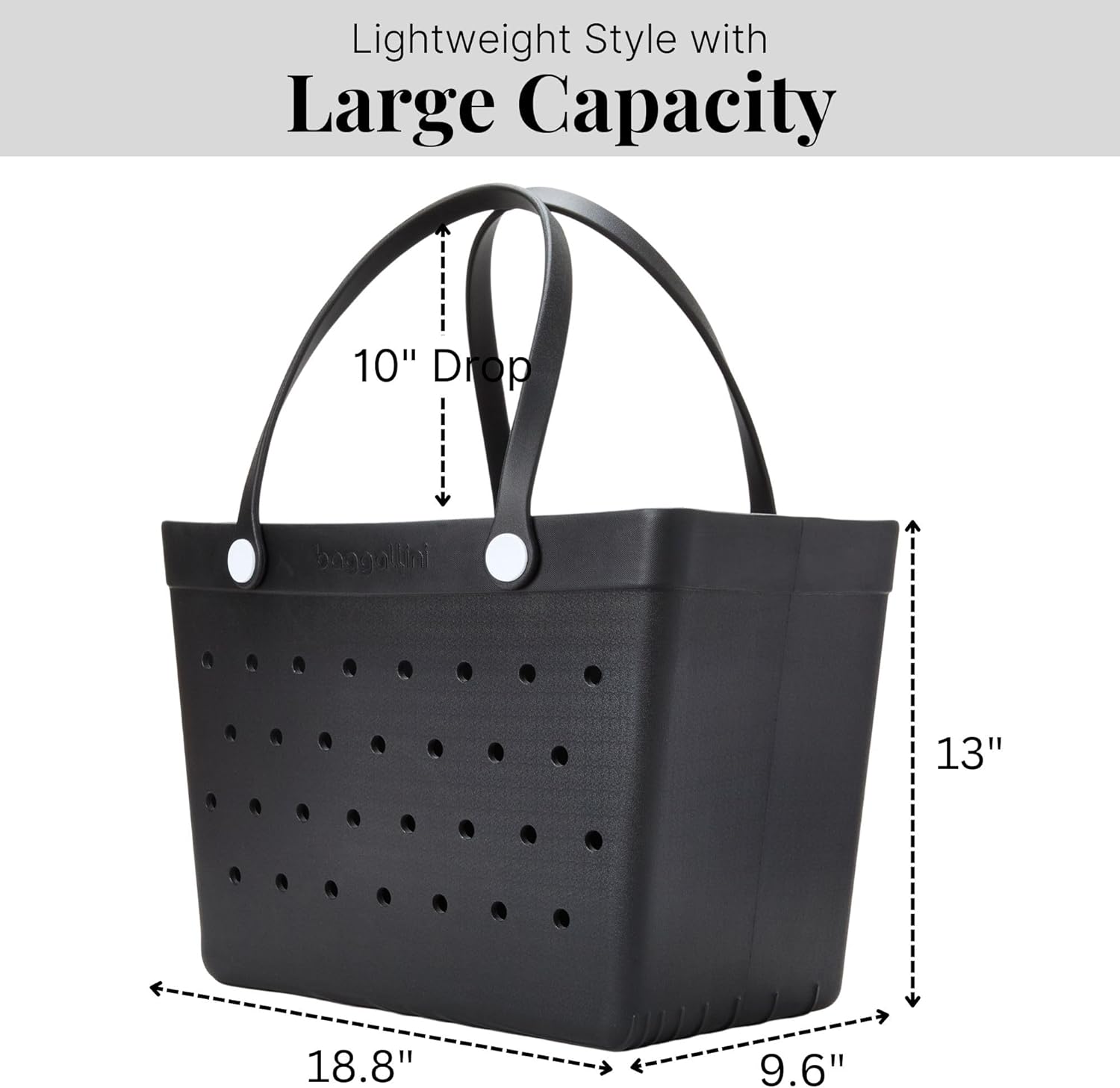 The Breeze Tote is your ultimate multi-purpose EVA tote bag—crafted with a durable, material that’s 100% waterproof, easy to clean, and built to last. Whether you’re heading to the beach, pool, or simply running errands, this structured tote bag is your new favorite companion. With a generous interior that fits beach towels, toys, sunscreen, and more, it’s the perfect family beach bag or pool tote for fun-filled summer days. Designed with convenience in mind, the stand-up bottom and rigid body make packing and unpacking effortless—no more tipping or sagging. The wipeable surface means spills, sand, and water are no problem—just rinse and go. This oversized waterproof tote bag is also a smart solution as a laundry tote or utility carryall for on-the-go moms. Lightweight yet tough, the Breeze Tote doubles as a beach toy bag for kids, a tailgating tote, or a stylish teacher tote bag. Take it to local sporting events, lake days, or picnics—it easily accommodates refreshments, blankets, and more. With drain holes for easy drying and optional organizer inserts, it's a modern take on the classic rubber tote bag. Available in a variety of trendy colors, this sandproof, washable tote bag is a must-have for summer travel, vacations, and everyday adventures.