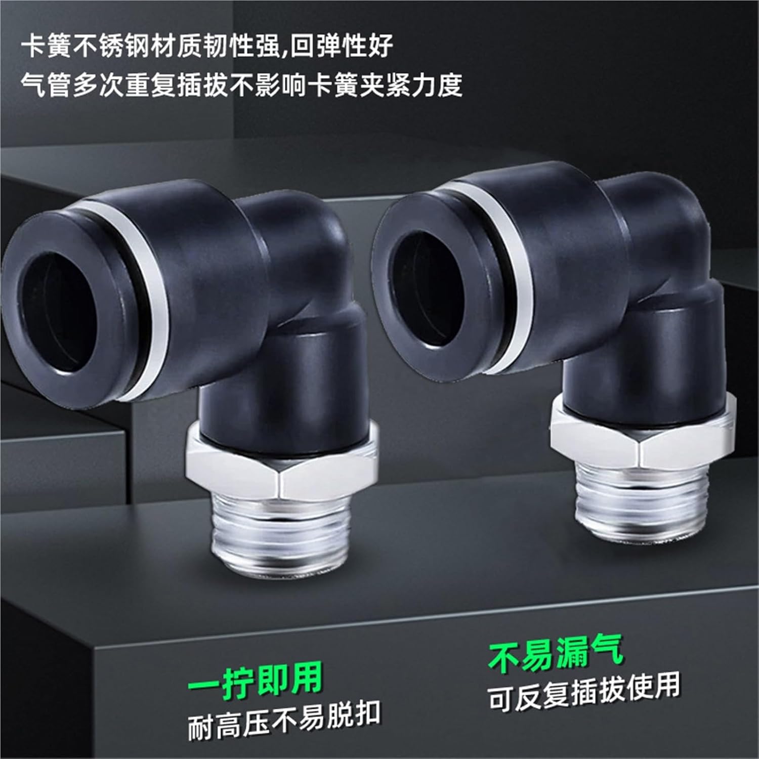 Y FittingsBlack Pneumatic Pipe Joint Quick Plugs 90 Degree L-shaped Elbow PL4-M5/6-01/8-02/10-03 1Pcs