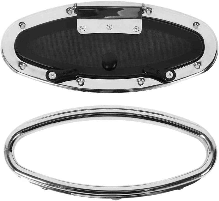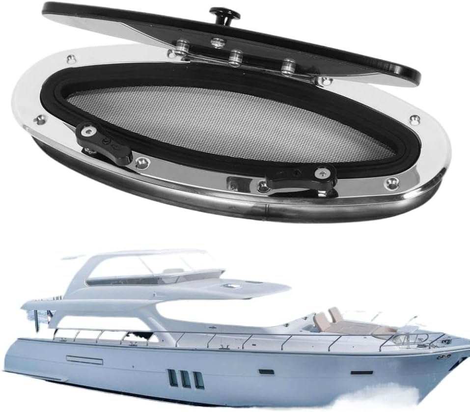 300×105mm Boat Porthole Window with Switch Handle Internal Tempered Glass Resistant Waterproof for Marine Yacht Boat porthole window is constructed with marine grade stainless steel for the entire frame and hinge, resistance to rust.The is polished to a smooth finish and designed to withstand harsh marine conditions.The porthole features 6mm thick smoky tempered glass, which provides structural strength, filters sunlight, and allows natural light into the cabin to enhance interior brightness.The window opens from 0 to 180 degrees with an internal switch handle mechanism.A fixed handle and net provide secure positioning at any angle, supported by a stainless steel hinge, offering unobstructed views during navigation.Suitable for various onboard spaces, this portlight can be installed in storage cabins, living areas, lounges, and bathrooms, serving both as a solution and ventilation window.The porthole is designed for installation on panels with a thickness between 26mm and 36mm.It fits applications on boats, yachts, ships, and RVs, making it suitable for retrofitting or replacement projects.Item Type: Boat Porthole Window Material: Stainless steel + tempered glass + ABS + rubber Switching Method: Internally open, includes stainless steel retaining clamp ring Window Dimensions: Approx.345 x 150mm / 13.58 x 5.91in Installation Hole Size: Approx.300 x 105mm / 11.81 x 4.13in (allowing 2mm error for manual measurement) Suitable for Installation Thickness: Approx.26–36mm / 1.02–1.42in The window is an inward- type; the glass with handle is installed on the inside of the cabin, and the fixing clip is installed on the outside.