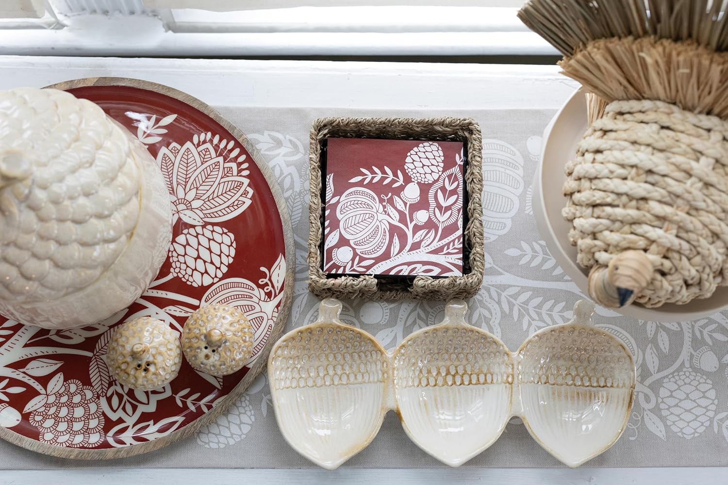 This stoneware cookie jar makes a great place to store goodies! Acorn-shaped container measures 7.5 inches in diameter and 10 inches tall. At Boston International, we believe in turning familiar spaces into works of art—by infusing the simple things with personality and artistry. Our woman-owned, design-driven company has been a leader in the home decor and gift industry since 1986. We invite you to celebrate the home with Boston International!