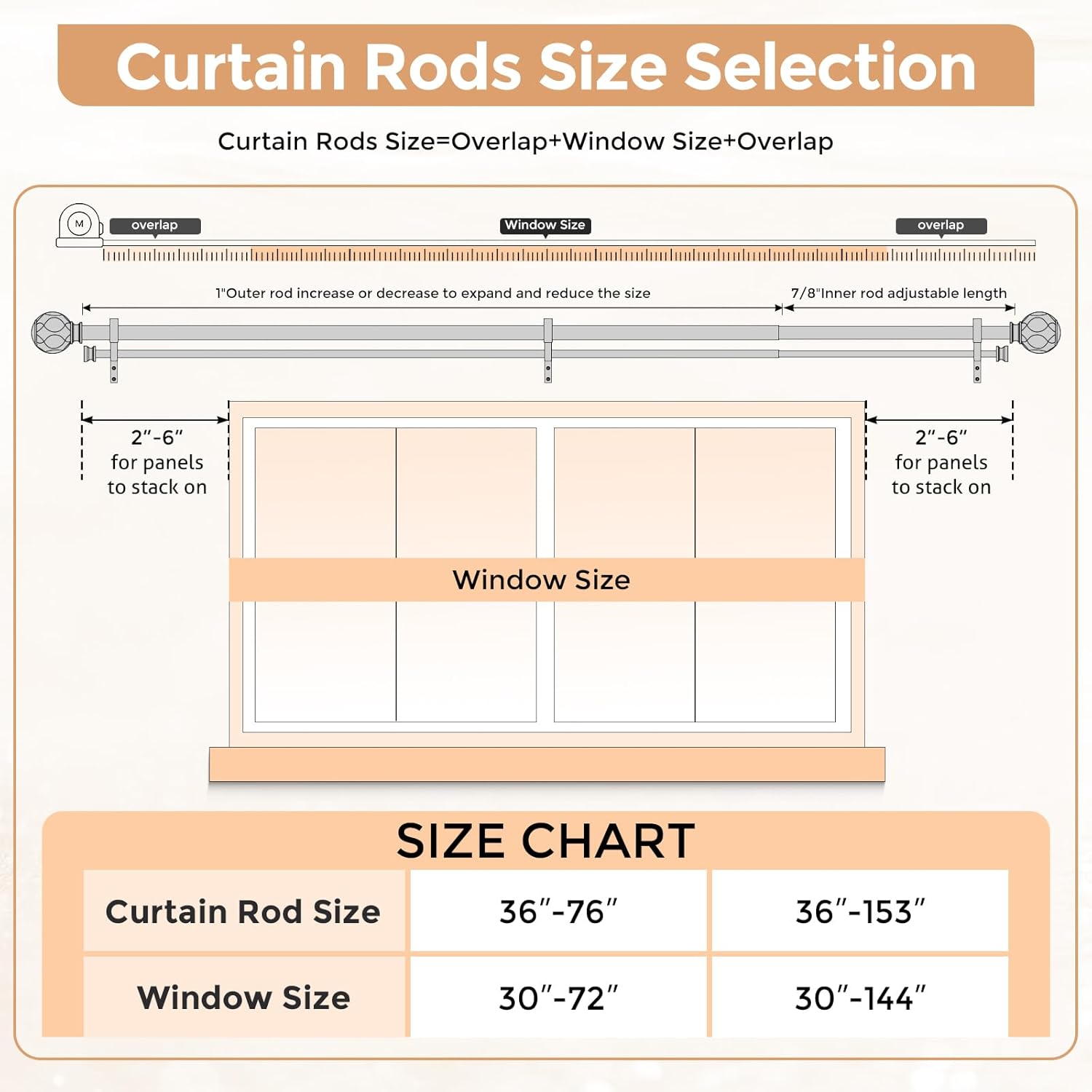 | Included Components | Anchors, Brackets, Curtain rod decorative head, Srews |