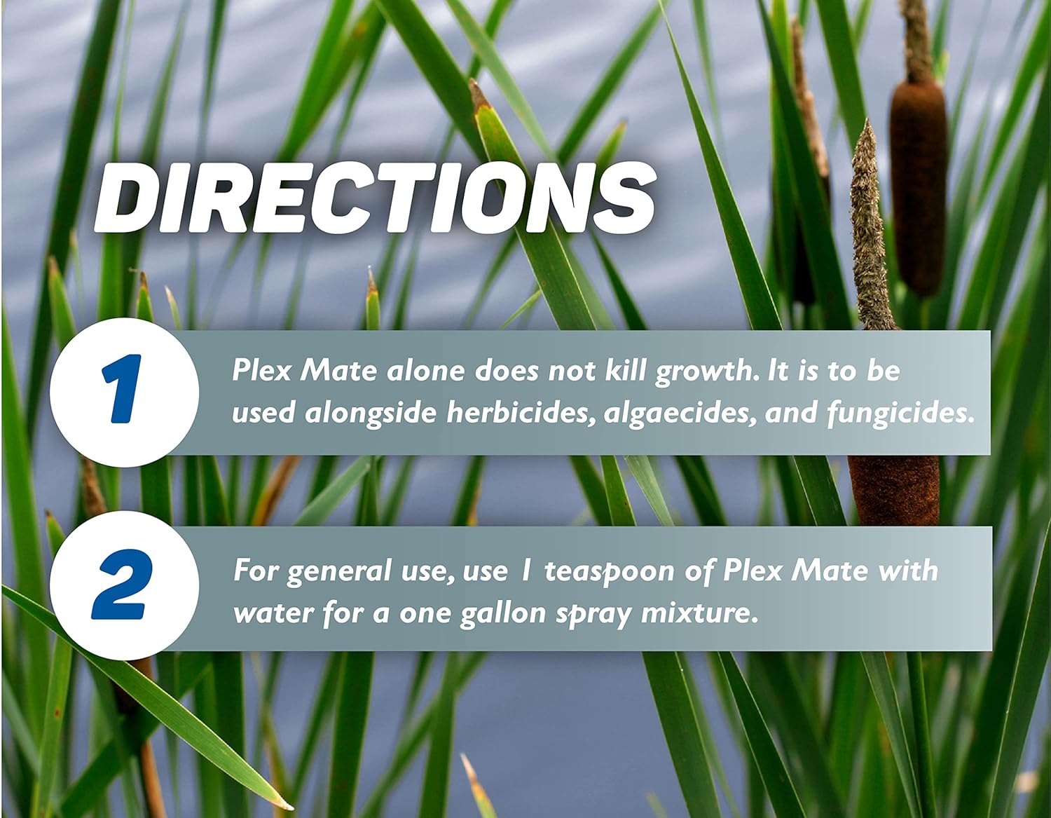 CattPlex Pro herbicide is an aqueous formulation that may be diluted in water and either applied directly to water for the control/suppression of certain submerged aquatic veg¬etation or applied as a broadcast or spot spray to floating and emergent vegetation. Aquatic sites that may be treated include estuarine and marine sites, ponds, lakes, reser¬voirs, wetlands, marshes, swamps, bayous, arroyos, ditches, canals, streams, rivers, creeks and other slow-moving or quiescent bodies of water. CattPlex Pro may also be used during drawdown conditions. CattPlex Pro may also be applied for terrestrial and riparian vegetation control in industrial noncropland sites, and railroad, utility, and high¬way rights-of-way. Industrial noncropland sites include utility plant sites, tank farms, pumping installations, storage areas, fence rows and ditch banks. CattPlex Pro may also be used for the establishment and maintenance of wildlife openings. CattPlex Pro may also be used on those sites list¬ed above that may be grazed or cut for hay. CattPlex Pro is quickly absorbed by foliage and/or plant roots and rapidly translocated to the growing points stopping growth. Susceptible plants may develop a yellow appear¬ance or general discoloration and will eventually die or be severely growth-inhibited. CattPlex Pro is herbicidally active on many submerged, emergent and floating broadleaf and monocot aquatic plants. The relative levels of control and selectivity can be manipulated by using a choice of rates and herbicide placement (water-injected or floating/emergent foliar application). Get the best results from your herbicides and algaecides by using a surfactant! Surfactants help stick your;chemical herbicides and algaecides to the plant. Plex Mate will also break down the waxy coating on aquatic weeds to allow more effective penetration by algaecides and herbicides. Our Plex Mate surfactant is used when treating floating and emerged weeds, and surface algae.