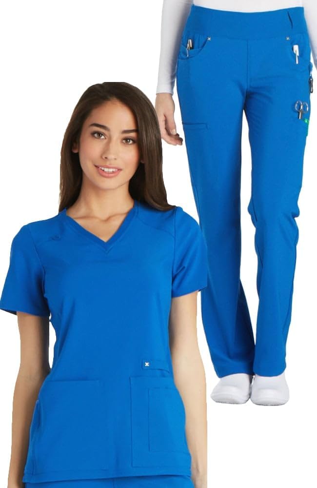 Cherokee is the most popular medical apparel brand in the world, known for scrubs and footwear that look great and perform beautifully. Since 1995, we've made it our mission to care for people who care for others. Nurses, physicians, and other healthcare professionals have chosen Cherokee to help them look and feel good because we offer a wide range of styles and colors to fit any lifestyle, budget, and taste. The Women scrubs set is designed with a v-neck short sleeves top, providing comfort and relaxation during your busy day. The top and bottom have sufficient pockets so you can carry your essential items with ease. The pants feature mid-rise, straight leg a comfort-fit knit waistband reinforced with inside elastic for extra support.