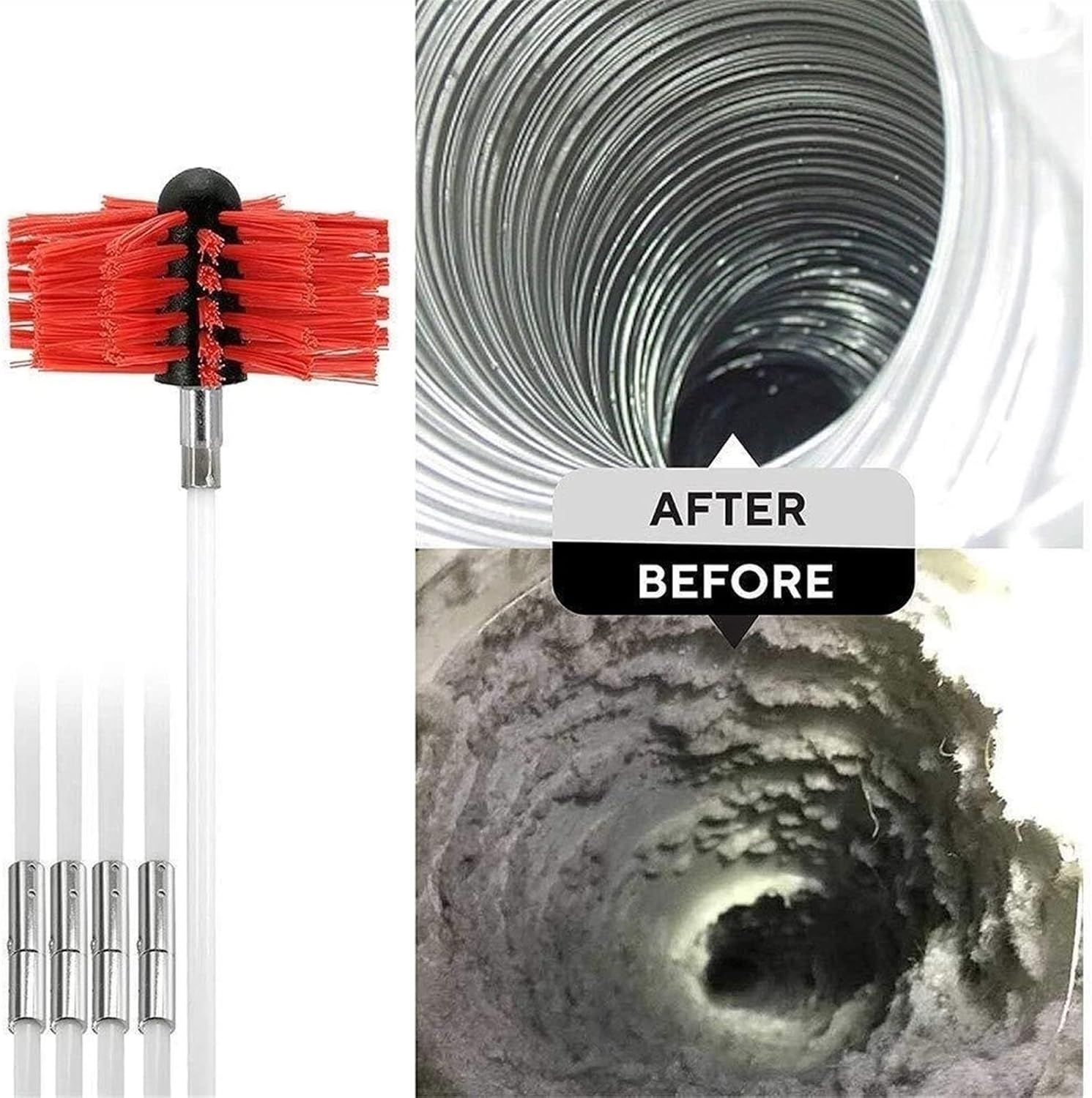 9/12 Flexible Rods Fireplace Chimney Brushes, Dryer Vent Cleaning Kit, Flexible Lint Brush with Drill Attachment for Faster Cleaning, Range Hoods Tubes Cleaning Tool KitsFeature:Suitable for metal flues and brick chimneys of different diameters and shapes.According to the actual selection of the corresponding pole length.Able to clean the chimney efficiently from bottom to top.Convenient quick disassembly and assembly structure, easy to use and operate.Will not scratch the inner surface of the pipe.The working head is made of reinforced polyester fiber, which is wear-resistant, has a long life and is not easy to break.How To Use:Step 1: Connect the rods TWO by TWO;Step 2: Attach the bristle with rods;Step 3: Put the brush into the flue;Step 4: Slide the rod into the flue;Step 5: Attached the drill with the rod;Step 6: Start cleaning the chimney.Specifications:Material: nylon + plasticColor: redAccessories: brush head + long brush + 9 rods/12 rodsSpecification: 41 cm x 9/12 poles/61cm x 9/12 polesPackage Including1 x brush head1 x long brush9/12 x nylon rods1 x Chuck connector1 x small wrenchWarm prompt:1.Only the above list is included, other products are not included.The other products in the picture only show how they are used.2.As different measuring methods,it will occur 1-3 cm deviation about the items,please ensure that it is okay for you before ordering.3.Because of different monitors and lamplight,the picture may not reflect the actual color of the item,really thank you for your kind understanding!chimney sweep kit cleaning extends up to 30 feet cleaner tools system with brush 9 flexible rods dryer duct 2-in-1 fireplace drier vent lint sweeping drill attachment synthetic head rod remover dry long nylon rotary drive kits reusable 18 ft