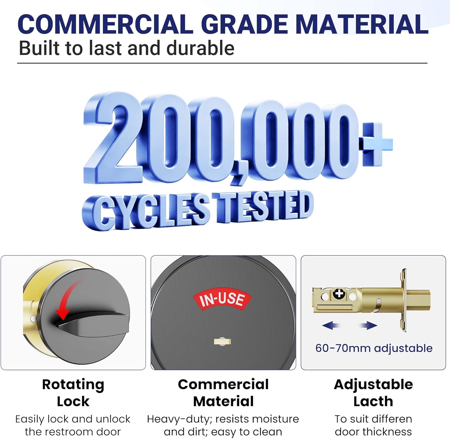 | Additional Features | Vacant Occupied Bathroom Deadbolts Lock,In-USE or Vacant Indicator Door Lock, Commercial Grade ANSI Grade2, Dedicated Window for Indicator, Universal Ambidextrous Lever Handle |
