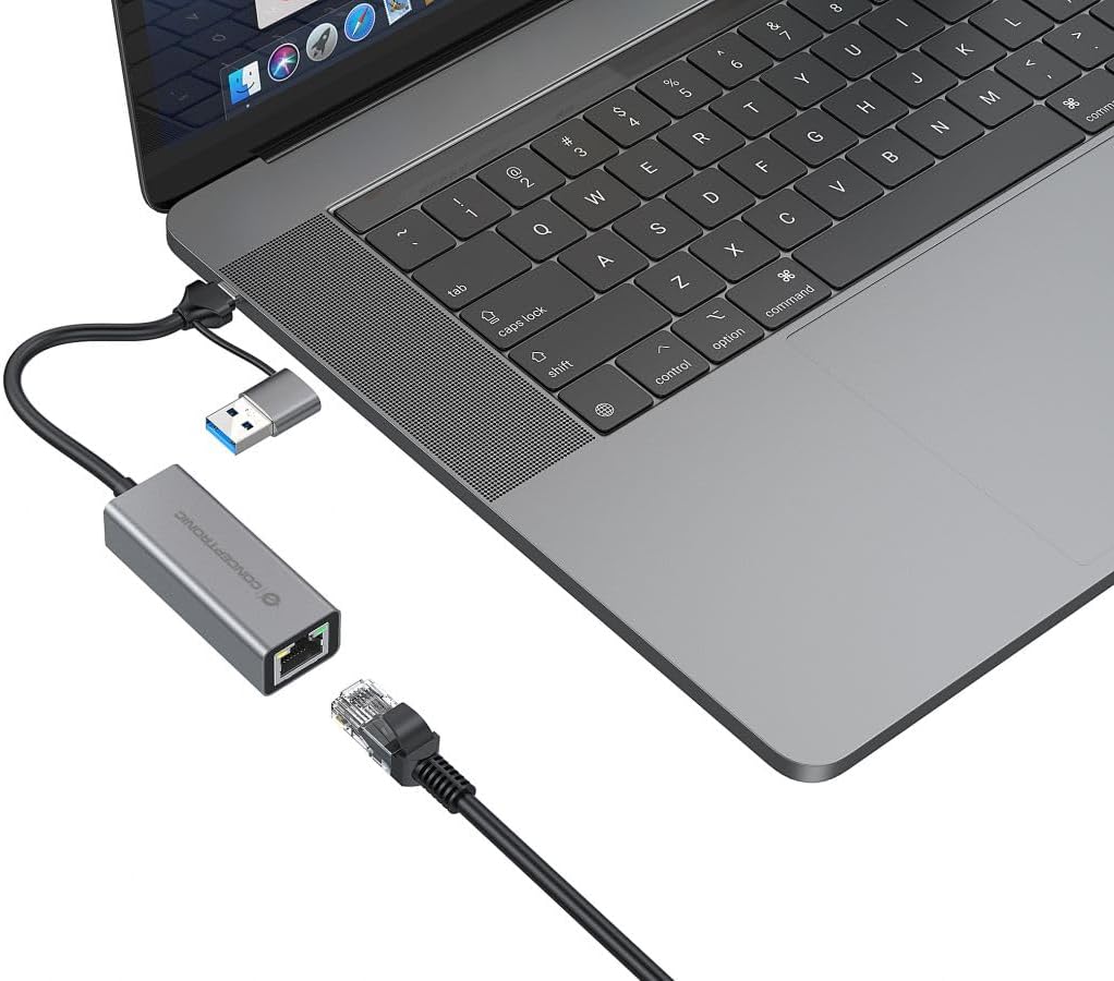 The USB to Gigabit network adapter allows you to easily connect to the internet via your laptop's built-in USB-A or USB-C port. This is an ideal solution for MacBooks or other Windows computers that have built-in wireless capabilities but do not have an Ethernet port.