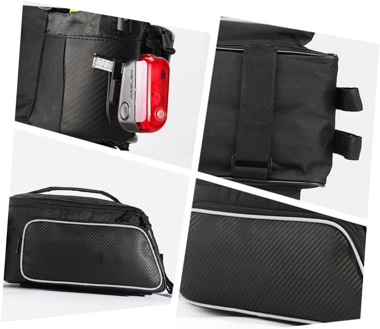 Package Include 1 Features - Material: Nylon cycling bike bag. - Size: 40x16x17cm/15.7x6.3x6.69 inch cycling basket bag. - Color: Black. - The bike bag has reflective stripes that are highly visible and reflective even in any kinds of weather bike back seat bag. - Universal bike accessories bag is suitable for mountain bike, foldable bike, bike, etc bag. - The large capacity can hold of necessities that you need to use when riding. Reduce your storage bike bag. - Made of material, it is and use. You can to use it. - This product can be given as a great for your friends and families. They will be very happy.Goods Descriptioncycling bike bag This product can be given as a great for your friends and families.bag Made of material, it is and use.mountain bike bag They will be very happy.bike back seat bag This is a premium back seat bag.cycling basket bag The bike bag has reflective stripes that are highly visible and reflective even in any kinds of weather. You can to use it