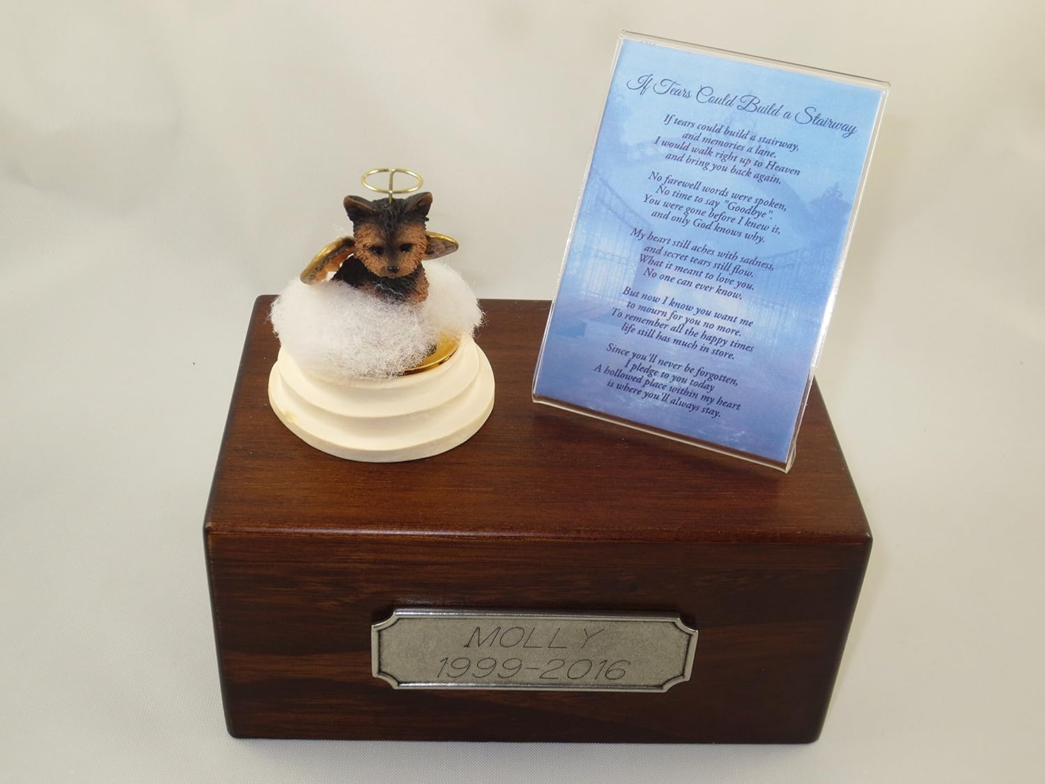 Conversation Concepts Beautiful Paulownia Small Wooden Urn with Yorkshire Terrier Figurine & Personalized Pewter Engraving …