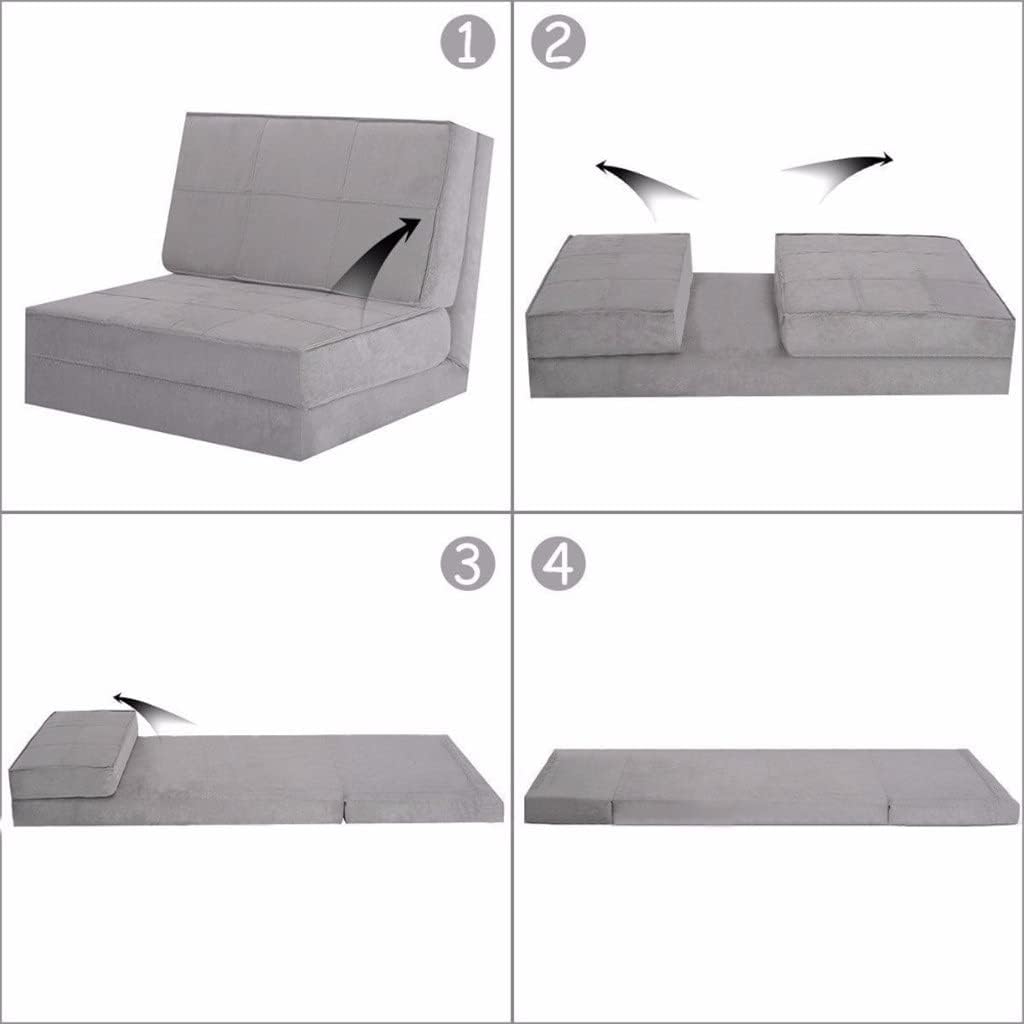 Product Description This Is Our Brand New Black Folding Bed Couch Which Is Designed With All High Quality Foam Coved By Black Ultra-Suede Fabric.The Bed And Couch Combination Has 5 Adjustable Positions That Can Be Arranged As A Comfortable Chair, A Reclining Lounge Chair Or A Single Bed To Meet Your Needs. No Assembly Needed And Flexible For Any Occasion, Such As Kids' Sleep-Overs, An Unexpected Guest, A Summer Picnic, Camping, And Television Viewing. If You Are Looking At It,Pls Don't Hesitate To Buy It From Our Store! Feature Ultra Suede Material Comfortable For Use 5 Adjustable Positions Chair Easily Converts Into A Bed Perfect For Any Room, Apartment Or Small Space No Assembly Needed Specifications Color: Gray Material: Ultra-Suede Weight: 16.8lbs Product Dimensions: 83"(L) X 28.3"(W) X 4.5"(H) Product Dimensions With Folded Pillow: 66.5"(L) X 28.3"(W) X 4.5"(H) Chair Dimensions: 21.7"(D) X 28.3"(W) X 8.7"/23"(H) Package Includes: 1×Folding Bed Couch Set Indoor Use Backyard Porch Garden Pool Side Balcony