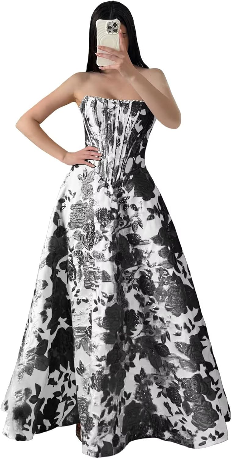 | Embellishment Feature | Elegant Birthday Party Dress, Floral Print Satin Prom Dress, Floral Prom Dress for Teens, Satin Formal Dress for Women, Strapless Corset Prom Dress |
