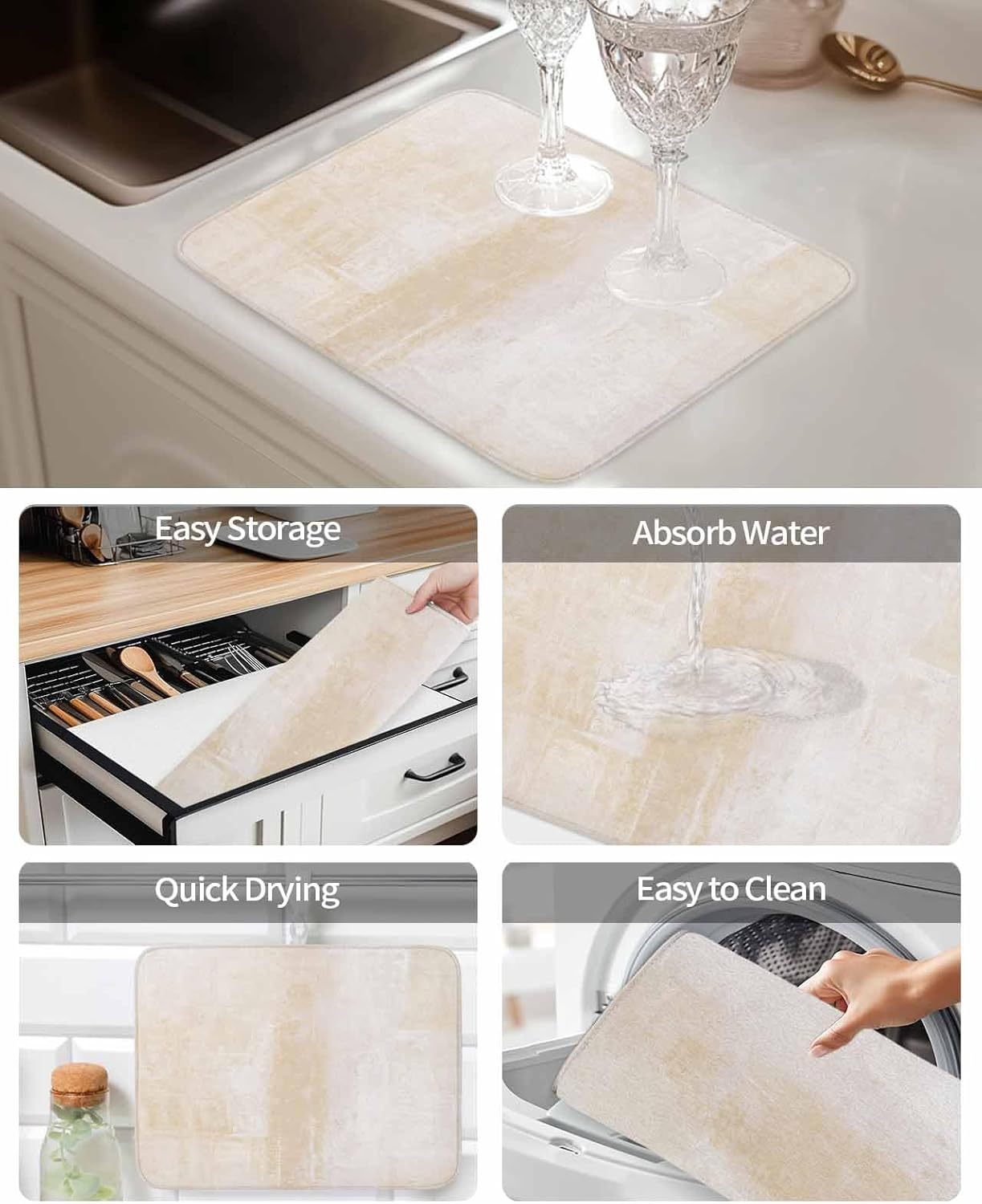 Dayforbarley Highly Absorbent Dish Drying Mat Premium Material This dish drying mat is made of absorbent polyester fabric that protects kitchen countertops from scratches and wetness. It has a soft texture and rolls up easily for storage Versatile Mat Our dish drying mat is suitable for draining dishes, cups, pots and pans, fruits and vegetables. It can also be used as a non-slip mat or heat shield Stylish Design This dish drying mat is printed with a stylish design that is practical and brings a touch of aesthetics to your kitchen Easy To Care Our dish drying mat is machine washable, do not bleach and air dry after washing
