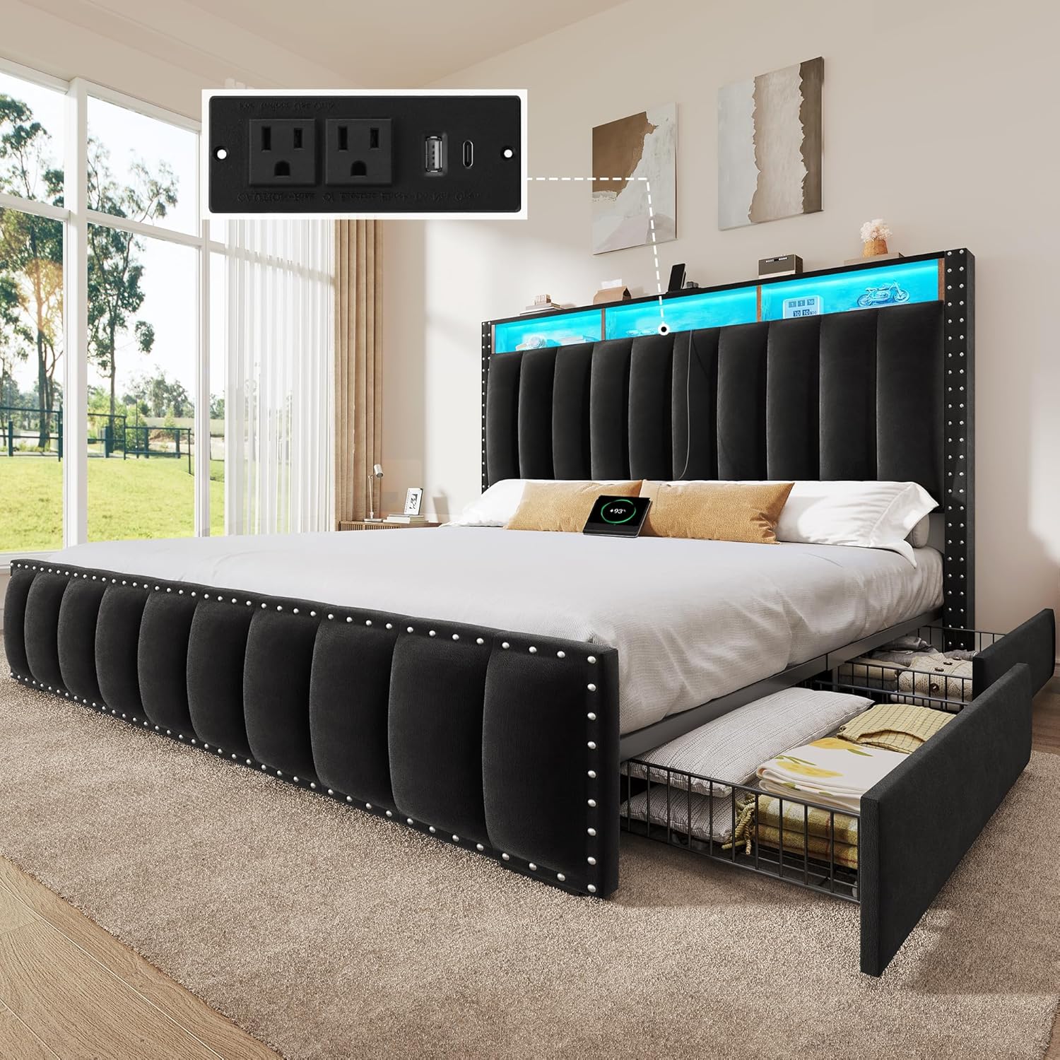 | Set Name | Bed Frame with Storage and LED Light Set |