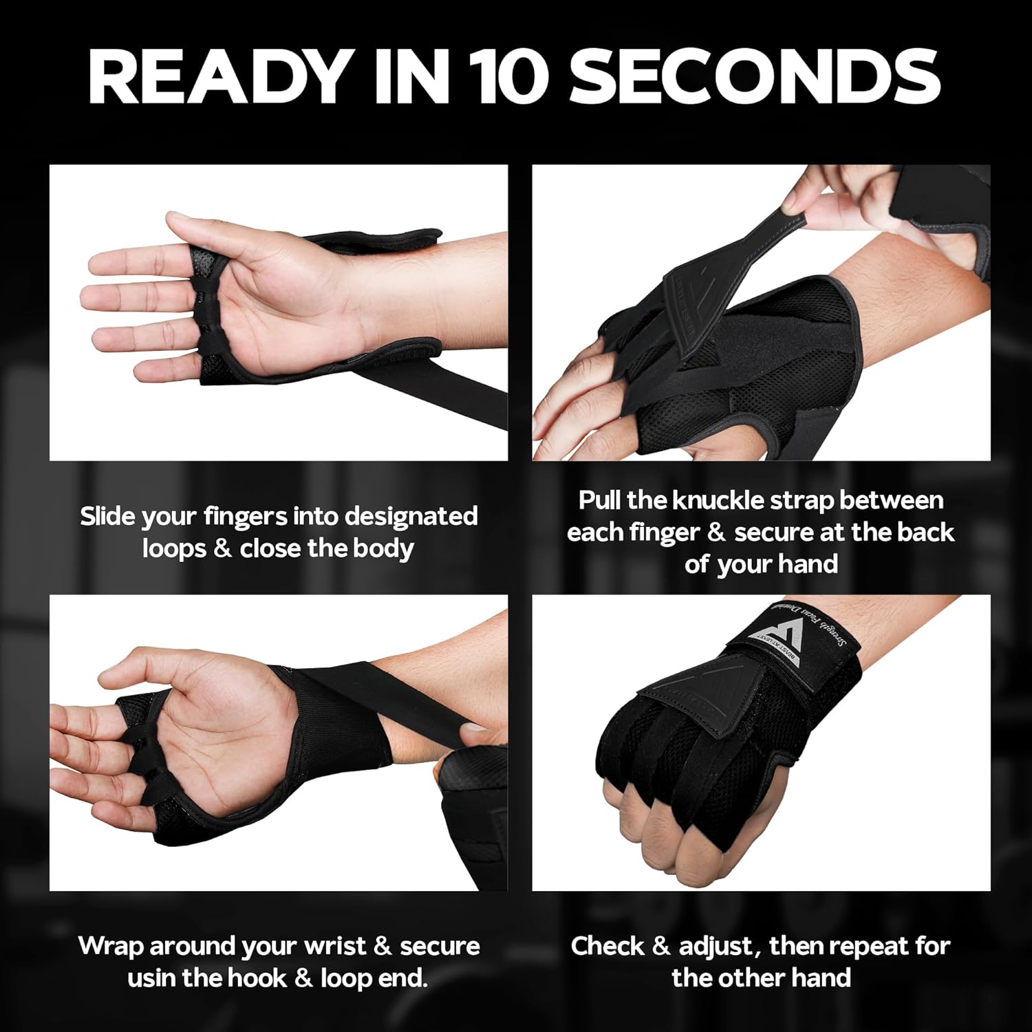 Get ready to your training with these Fast Hand Wrap Gloves, designed for athletes who want speed, simplicity, and solid protection. Unlike traditional hand wraps that take time and effort, these gloves offer a 4-step quick-wrap system that gets you ready to train in seconds. Whether you're hitting the heavy bag, sparring, or working on mitts, these gloves provide maximum wrist support, shock absorption, and breathable comfort. Perfect for boxing, MMA, Muay Thai, and other combat sports, these wraps ensure your hands stay protected without slowing you down. Ideal for beginners and professionals alike, just slide, adjust, wrap, and lock. Made from a lightweight, breathable polyester-cotton blend, they offer a snug and comfortable fit that feels like a second skin. With integrated EVA foam padding over the knuckles and a secure Velcro wrist strap,Each set includes one left and one right glove, anatomically designed to match the natural shape of your hands for maximum comfort and performance. Easy to clean, reusable, and suitable for all levels, these wraps are ideal for boxing, MMA, kickboxing, Muay Thai, and general fitness workouts. Whether you're a beginner or a pro, these fast wraps help you train harder, safer, and smarter