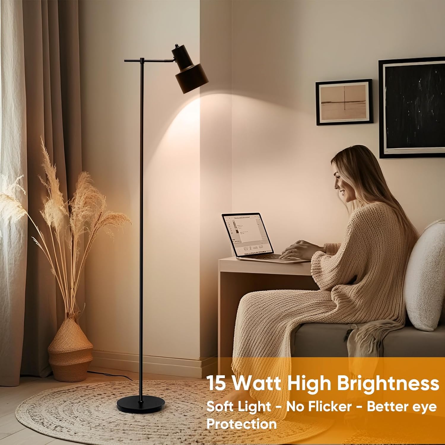 • 【High Quality Reading Floor Lamp】Refuse cheap plastic! All-metal body is more durable, the lamp head can be adjusted 90° to fit different angles, and the large base ensures that it stays upright in any situation. You don't have to worry about kids or pets knocking it over!