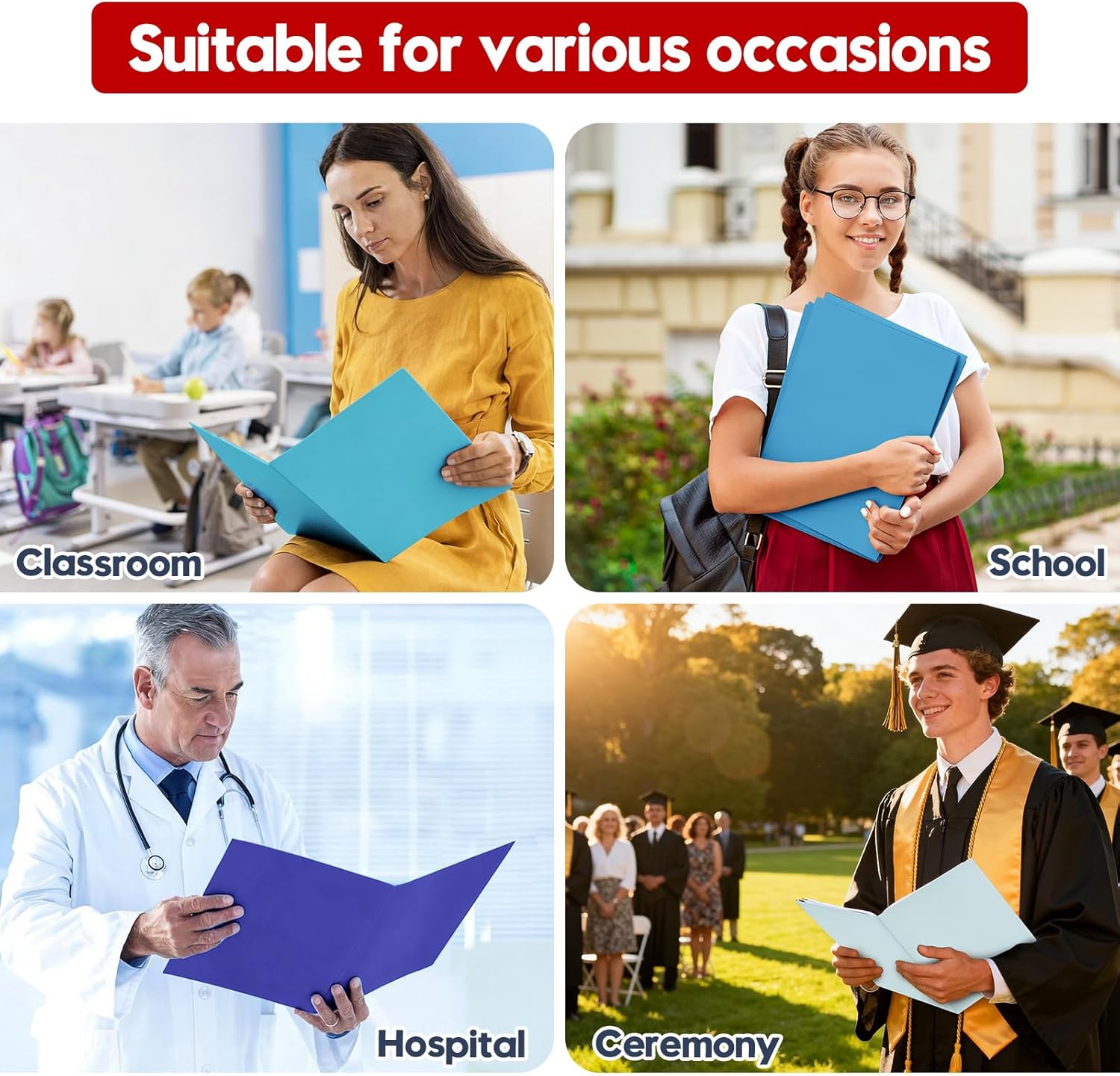 100Pack Two Pocket File Folders, Letter Size Folders with Business Card Slot, Holds 100 Plus Sheets for Office,Assorted 4 Colored Folders