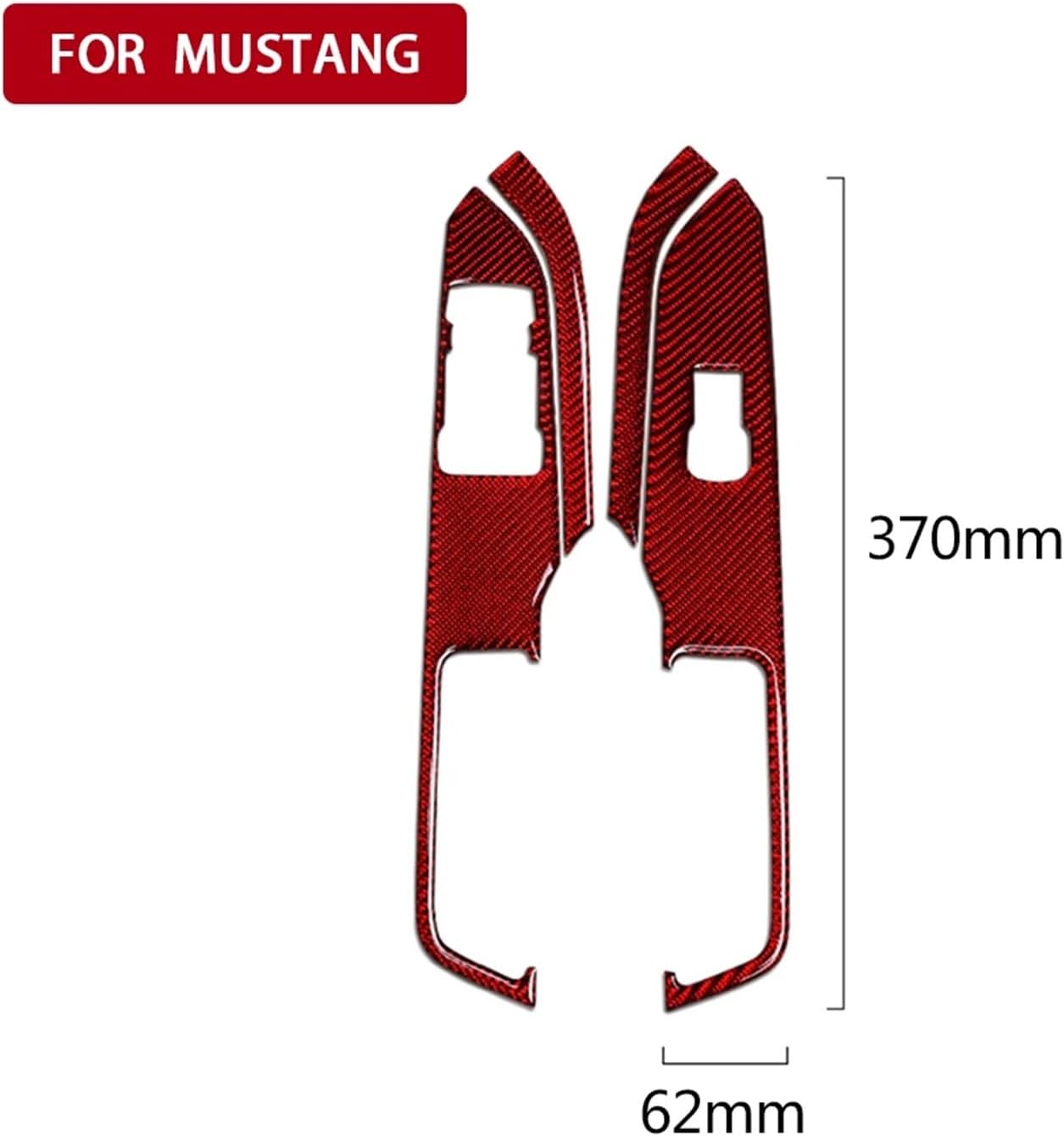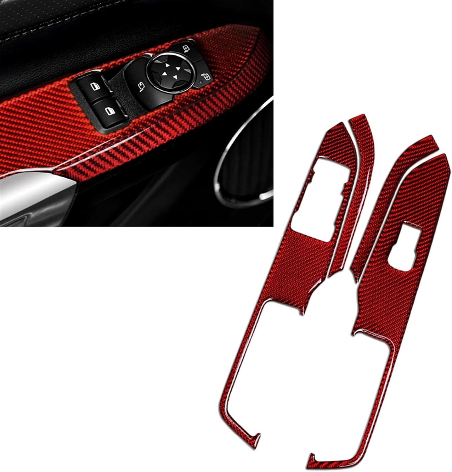 For fords Mustang 2015-2023 Door Window Lift Switch Control Armrest Panel Cover Trim Red Real Carbon Fiber Sticker Frame StripNotice:Please kindly check your car model and make sure the model fits in case of buying the wrong product.Specifications :Color : RedMaterial : High Quality Carbon FiberAttachment Method: AdhesiveQuantity: 4pcs/setFitment : fords Mustang 2015-2023Package Includes :4pcs/set Window Lift Switch Panel Cover TrimFeatures:-Decorate your car charming luxury vivid.-No Modification or Cutting Required.-Easy to Install with Tapes Which was Included.Installation Method:1.Please clean the area before installation2.Check the installation area according to the vehicle with this product first and then release the back of tape3.Install the item on the vehicle accurately and press it evenly with clean cloth4.Please avoid washing your car and touching water within 24 hours after installationWarm Tips:1. If you not familiar with DIY, please ask professional for help.2. In winter, when the weather is lower than zero, the adhesion of the tape becomes weaker. You can heat the location of the tape with a hot air tool.NOTE :Fitted photos just for your reference , which to show the installation effect and show you which model car can be installed ,the actual product is same as the detail photos, please also check the other photos carefully ,thanks ~PLEASE just feel free to contact us first ,we will get back to you in 24 hours,thanks !