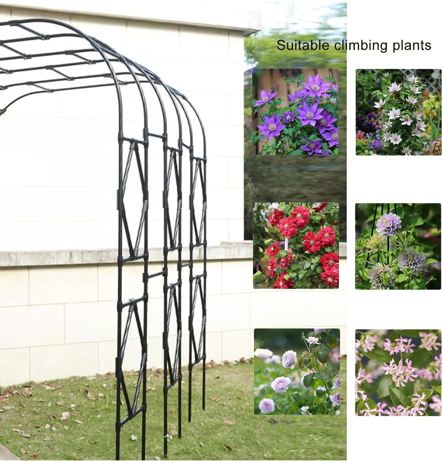 ◎The outdoor arch frame is made of steel pipe, which is sturdy and durable and not easily deformed.◎Eight-edged twisted plastic-coated steel pipe, streamlined design, easy for plants to climb. ◎Strong wind resistance. Easy to position or move garden arch arbor.◎The garden arch is easy to assemble and fix after splicing, meeting the requirements of various places. Specification:Name: Decorative Garden ArchColor: BlackMaterial: steelPipe diameter: 20mmSize: ( W x H)60x240cm(W23xH94.5in)90x240cm(W35xH94.5in)120x240cm(W47xH94.5in)150x240cm(W59xH94.5in)180x240cm(W71xH94.5in)200x240cm(W78xH94.5in)220x240cm(W86xH94.5in)240x240cm(W94xH94.5in)260x240cm(W102XH94.5in)300x240cm(W118XH94.5in)Side width: 40cm/15.7inNotice:* If a flower stand is used, it should be used in the current season. In the season when the flower stand is not needed, the flower stand can be removed and placed in a dry and ventilated place. Because it can prolong the service life of our flower stand.* Due to the manual measurement of the size, there may be an error of 1 to 3 cm. Please refer to the actual product. Thank you for your understanding.* Although we display the closest color possible, due to differences in computer monitors, there are likely to be some color variations.* If you have any questions, please contact us immediately and we will reply you within 24 hours.