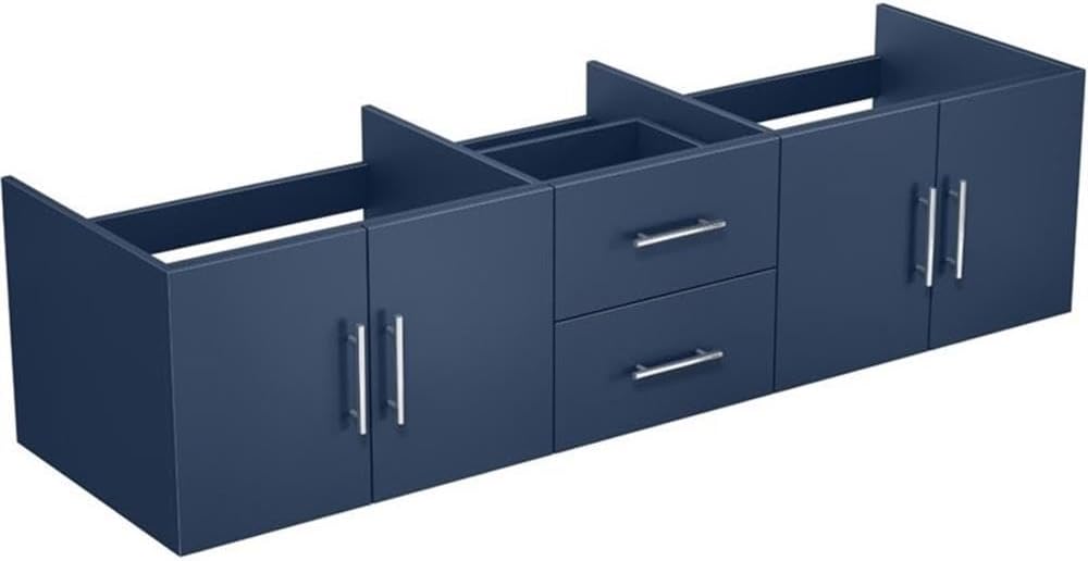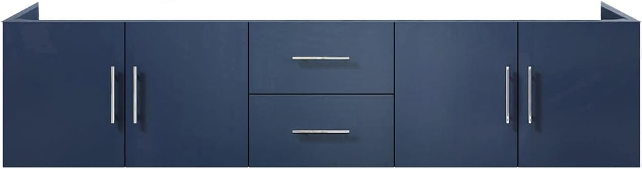 The Geneva collection is a symbol of luxurious, high-end minimalist notes, working with superb details and finishes towards creating a perfectly balanced bathroom decor. Available in white, dark grey and navy blue, with a Carrara Marble countertop and a single hole faucet spread, this bathroom cabinet enjoys a solid, heavy-duty construction, being easy to install for any DIY enthusiast. The double cabinet doors accompanied by 2 large drawers accommodate a wide variety of personal care products, towels, cosmetics, and other types of accessories, while the generous countertop dimensions are perfect for any size bathroom. An elegant undermount bathroom sink unit that has a contemporary finish, modernizing your bathroom space with a practical and stylish look, while keeping clutter out of sight! Features Two spacious compartments and two drawers provide ample storage space Cabinet dimensions are 79.25 in. W x 21.5 in D x 18.25 in. H. Full set dimensions are 80 in. W x 22 in. D x 19 in. H. Fully assembled vanity cabinet for quick and easy installation Sleek bathroom vanity available in a variety of finishes, including White, Dark Grey, and Navy Blue, with brushed nickel hardware included Available sizes are 30 in, 48 in, 60 in, 72 in, 80 in and 84 in Brushed nickel hardware included Two spacious full extension drawers for easy access to products Concealed adjustable hinges offer a sleek look and the ability to easily align doors Ideal for both residential and commercial use cUPCus certified Includes a 1 year limited manufacturer's warranty