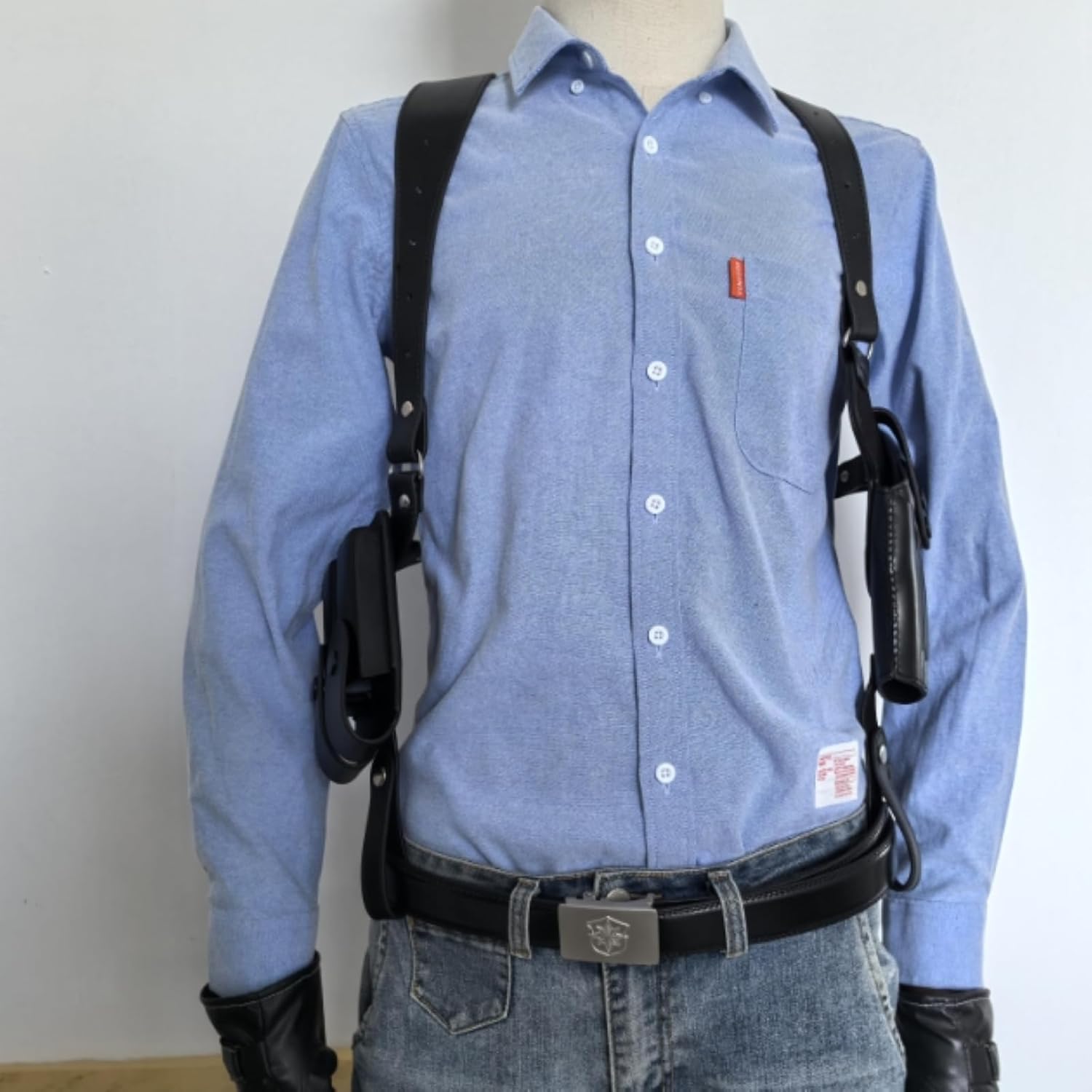 Specification:a pack Material:Leather Shape:Adjustable Package Include: 1x Shoulder Holster Color: Black or brown