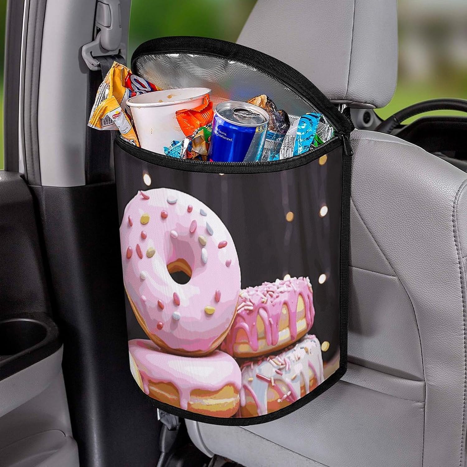 This stylish garbage bag storage bag features a built-in waterproof and leak-proof lining,effectively protecting the trash can and your car from beverage and grease stainsThe appearance design of car trash cans with lids is becoming more and more beautiful and fashionable. It is not only practical, but also adds a sense of decoration to the car