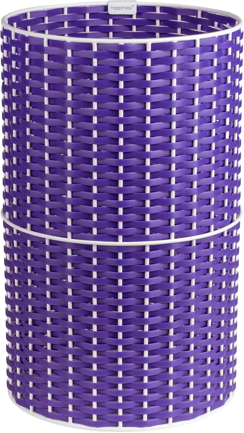 This slim wastebasket is the perfect shape to tuck into a small bathroom, bedroom or office. Durable enough for outdoor use, it's made from synthetic wicker woven onto a steel frame. Add color and texture to your space with the modern look of this versatile trash can.