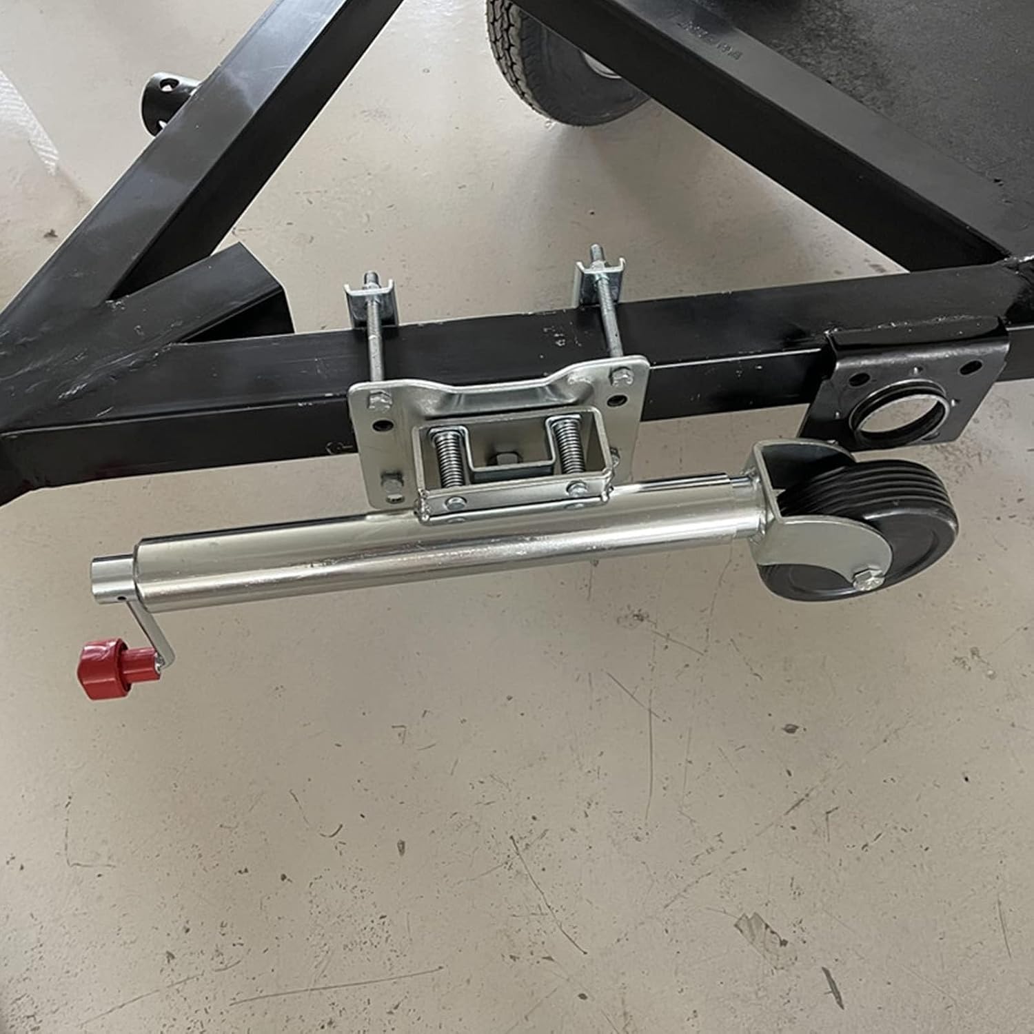 【: - Removable and swivel trailer guide wheels, premium galvanized finish, 15cm polypropylene wheel reinforcements and stainless steel nut fastenings for durability, includes all mounting hardware needed to mount 10cm trailer frame * 11.5cm - Trailer Jack Designed for Marine and Public Trailers ATV UTV Yacht Trailers, RVs 【Basic parameters: Product name: Trailer jack/RV trailer accessories/Trailer leg guide wheels/Trailer leg guide wheels/Trailer guide wheels Net weight: 8kg/17.3lbs Material: steel Capacity: 540kg/1000lbs Travel: 25 cm/10 inches Lift height: 25cm/10 inches Surface treatment: galvanized Path: side swing Total lifting distance: 60cm-85cm (23.6in-33.4in) Accessories: 10cm useful length bolts and free fixing plate Wide range of uses: trailer support wheels, foldable design, convenient for driving and parking, widely used to support various boat trailers, yacht trailers, RV campers. 【Product package: 1* Swivel trailer jack 【Please note the following: - There may be slight size errors due to manual measurement. - Due to different screen displays, there may be slight color differences. - Please be careful when using the product, please refer to the actual product.