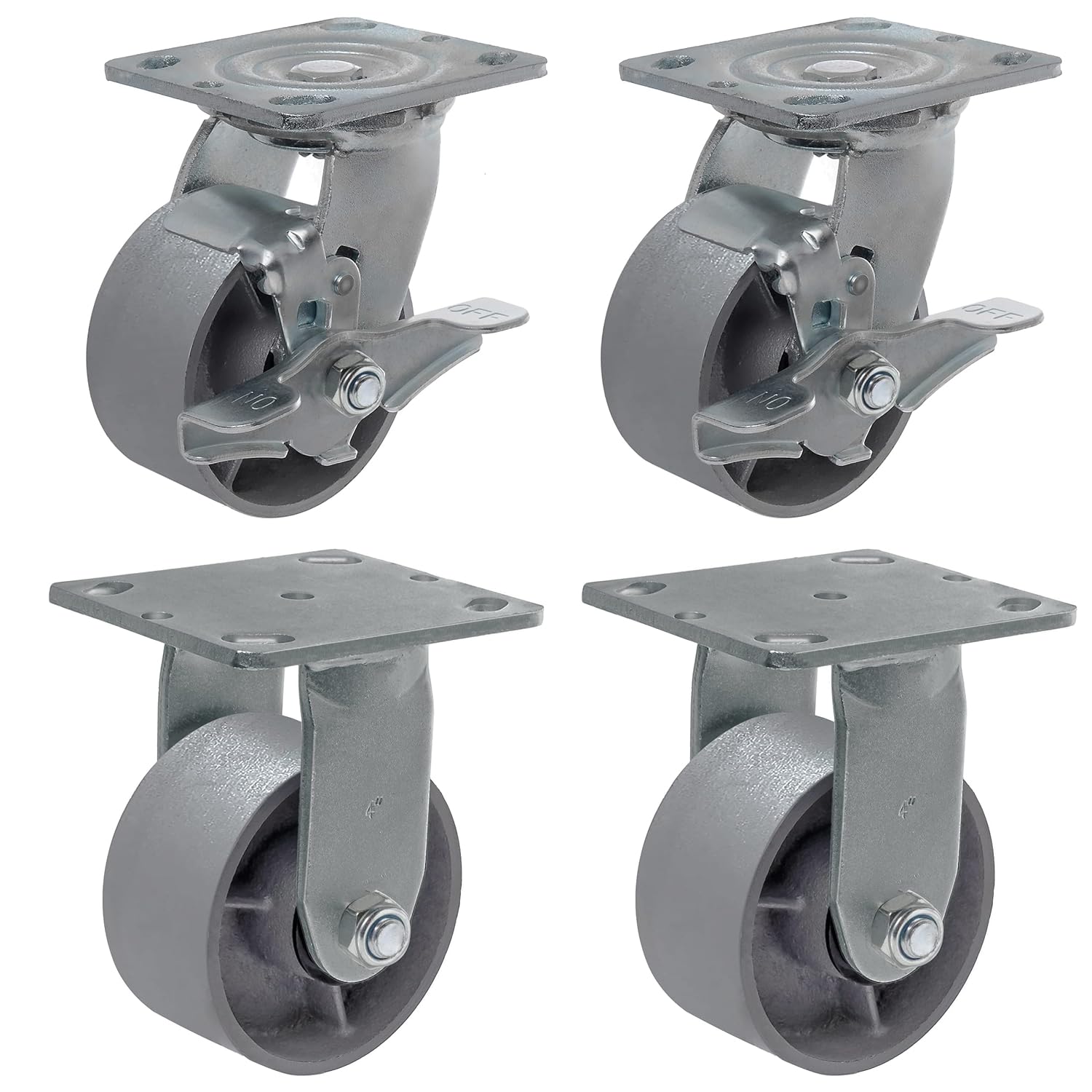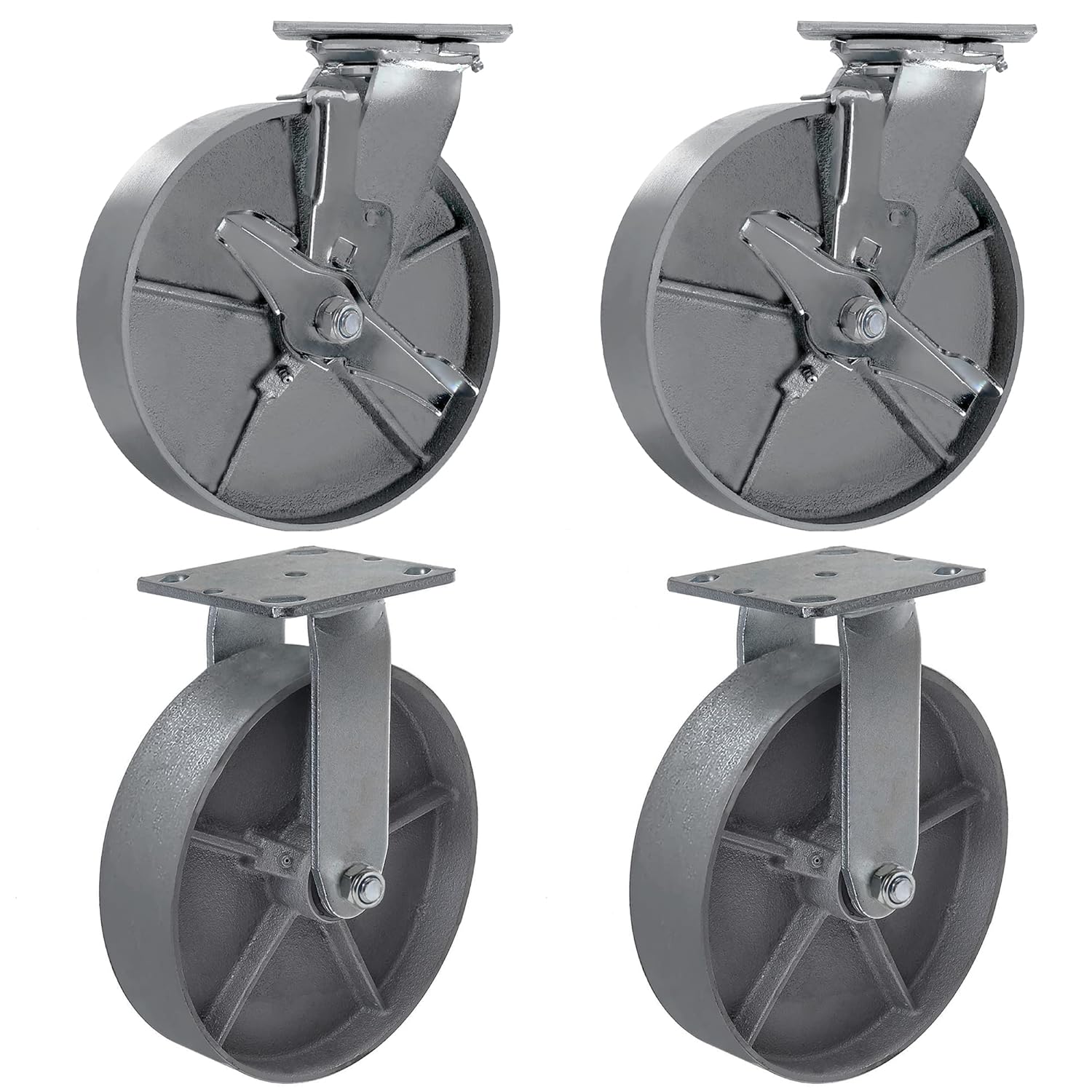 Product specifications: Wheel material: Cast Iron Wheel diameter: 8 inches Wheel width: 2 inches Caster Top Plate: 4x 4-1/2 Overall Height: 9-3/4 Load capacity: 1300LB Wheel color: Sliver Number of Casters: 1 Caster Form: Rigid
