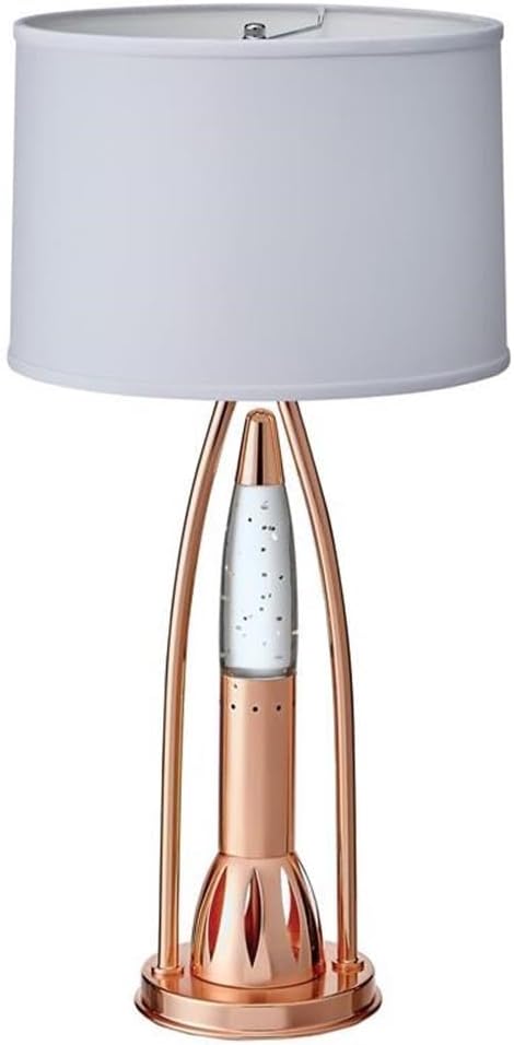 Ultra modern style table lamp (model# H13475) features beautifully crafted slender shaped frame of high quality metal and glass. Sparkling night light features rippling tiny water-droplet paillettes simulating dancing water motion illuminating warm white light rays. Features flexible lighting solution, the night light and the main light can be turned on at the same time, and can also work independently. Lamp shade measures at 15 diameter x 10H inches, minor assembly required. Watt Max: 100W E26/E27 (CFL lamp watt Max 23W), night light watt Max: 25W E1, bulb type R39/ss11/T7, includes 3 replacement led.