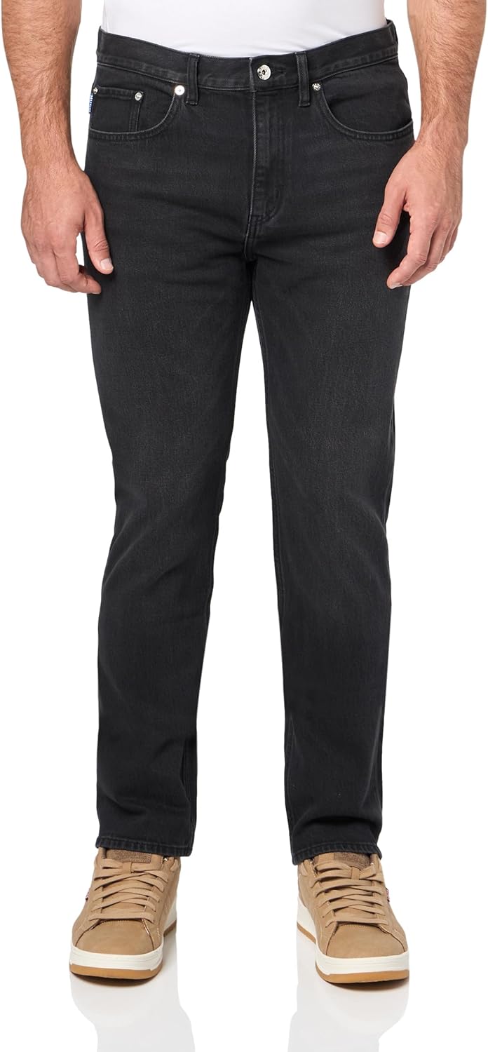 Authentic regular-rise jeans cut to a slim fit with a straight leg and crafted in heavyweight stretch denim with a blue stonewashed finish. These jeans are detailed with a button / zipper closure, side pockets, and patch pockets on the back.