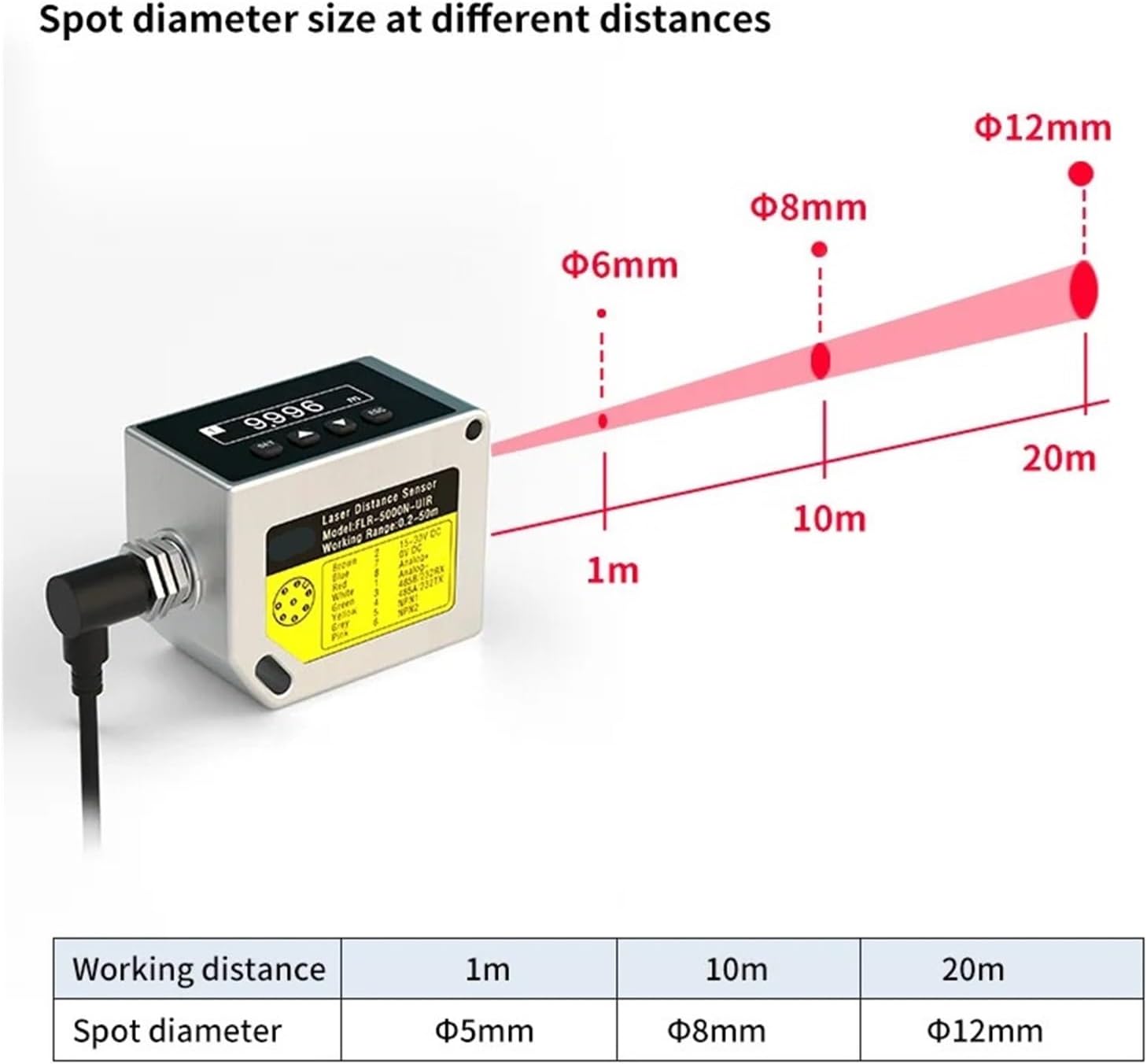 Is_customized : YesTheory : Optical SensorMaterial : MetalType : Optical-Electronics SensorOutput : Digital SensorOrigin : Mainland ChinaUse : Level SensorVoltage output error : 0.2%+0.5mVCurrent output error : 0.2%+0.005mACommunication interface : RS232/RS485(switchable)Measurement : 1Hz-40HzMeasure resolution : 1mmIngress protection : IP67Power supply : DC15~30VOperating temperature : -10°~50Fuselage size : 86.45x40x58mm (with connector)Backlight off time : 30 minutes (can be set to normally open)