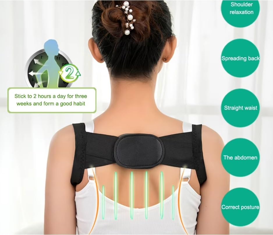 Product description:Product Category: Posture correctorMaterial : Polyester , spandex Color: Black, whiteApplicable Gender: Neutral/UnisexPackaging: Bag(excluding other exhibits)Warm Tips:Due to different shooting lights, the color may vary, please refer to the actual product.Suitable for various scenarios such as sitting in the office, attending classes, exercising, driving, etc.correcting body posture anytime and anywhere without deliberately adjusting the pace of life