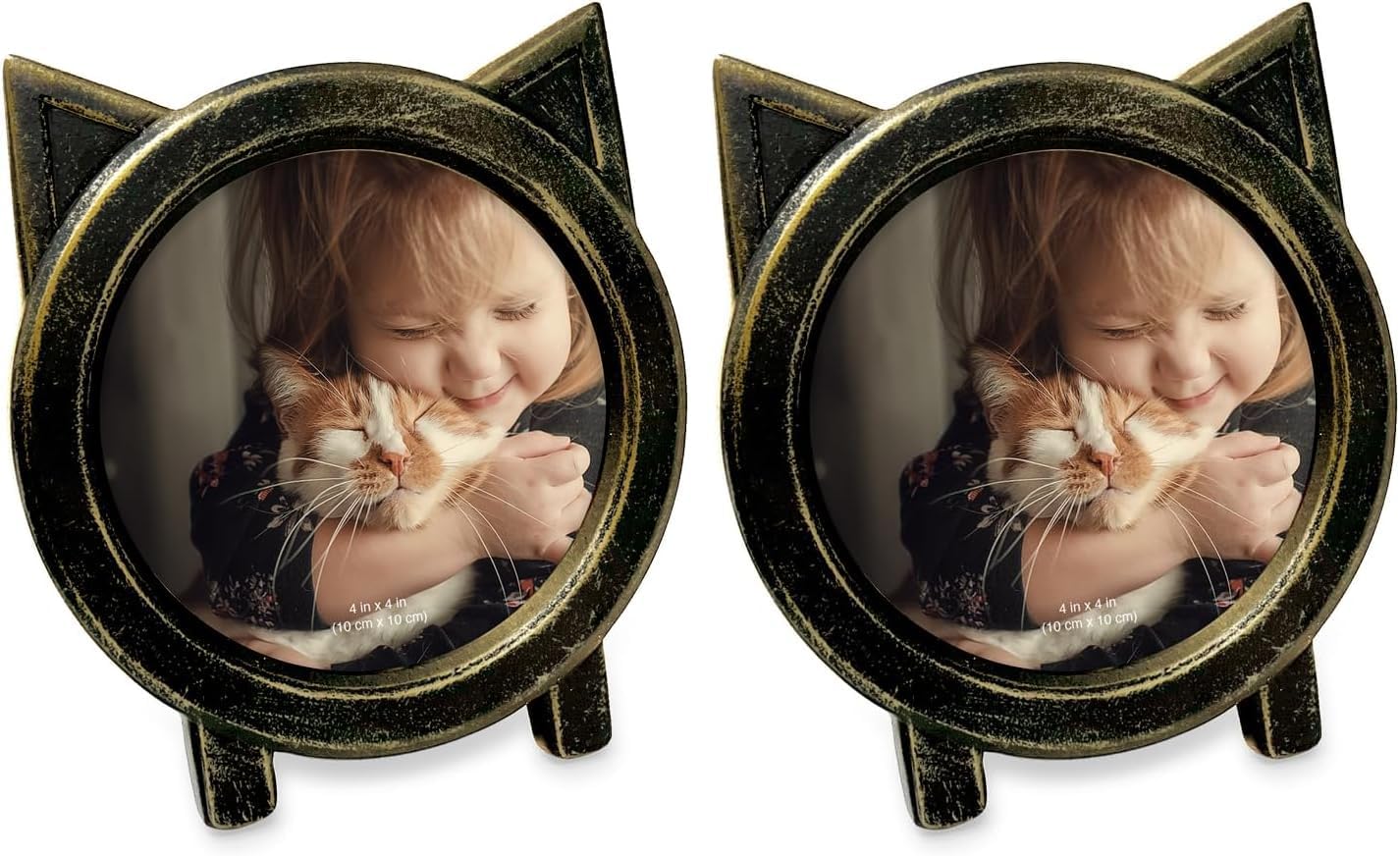 Keep the fun moments with your cat or kitten dear in this cute cat shaped picture frame. Designed with framing ears for charm and sentiment, you can easily relive the quirks and character that make your cat special. Perhaps a curious adventure out or a funny face mid meow or even an interesting pose. Show off old photos or take some new shots of your little friend & place them in this sentimental frame. Whether at home or work, this photo frame will remind you of good times and all the reasons to love your feline friend. Although it can be hung, its unique round shape and compact size make it a great accent for shelves, small table tops and desks. Our gallery picture frames are made to bring lighthearted joy to any space and celebrate your favorite memories, and they also make great gifts for your family and friends. No matter if you choose to gift or keep this delightful frame for yourself, its bold design is sure to enhance your amazing pictures and brighten your mood.