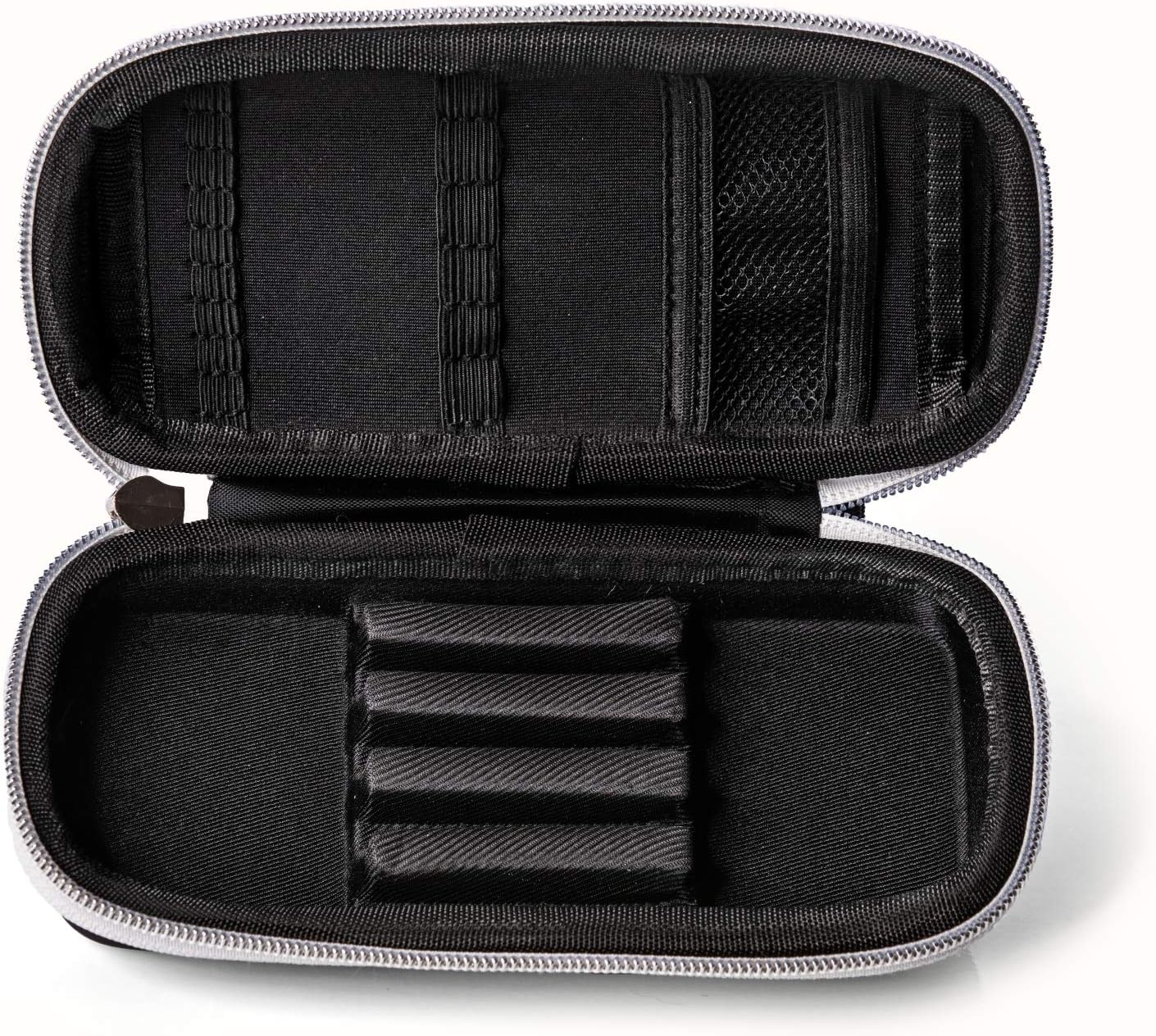 The Karella dart case - a must for any dart player! Finally an ultimate dart bag that leaves nothing to be desired. The completely new and easy to clean and washable outer material made of EVA protects your valuable dart equipment reliably against damage. The handy case is equipped with a high-quality metal zip and a carrying strap. The perfect and professional storage system inside the dart case offers space for three fully assembled arrows and plenty of accessories, such as tips, shafts and flights. This new development from Karella, in its perfect and high-quality workmanship and stability in all details corresponds to the usual Karella quality. The very elegant dart case meets all the requirements that a professional dart bag must meet.