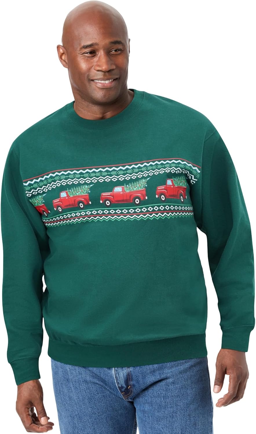Tis' the season for warm fleece sweatshirts designed with holiday graphics. Enjoy wearing our long sleeve fleece pullovers to festive parties and events. Relaxed fitbr>Ribbed crew neck, cuffs, and hembr>Taglessbr>Big abt. 32"; Tall abt. 34" br>Cotton/polyesterbr>Machine wash