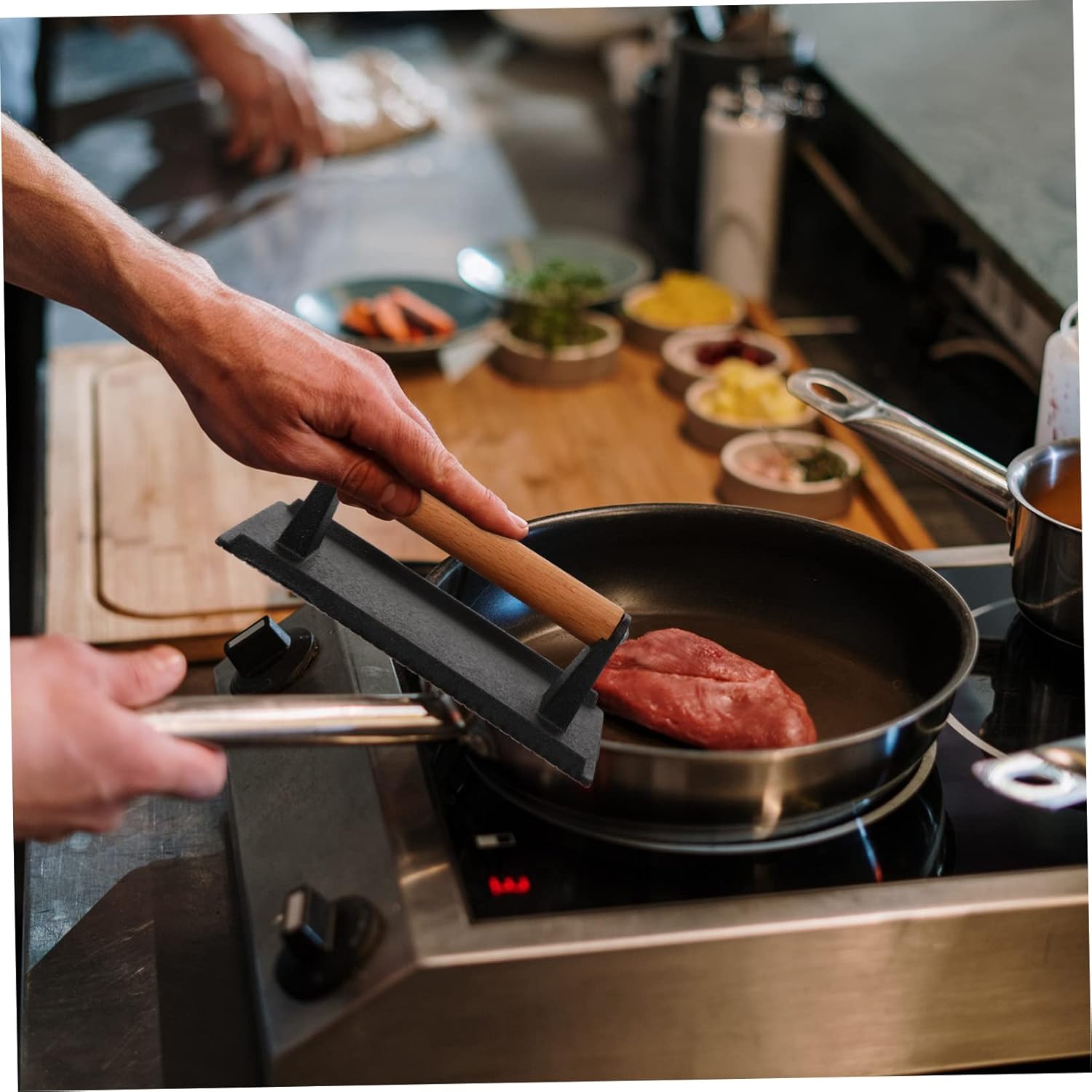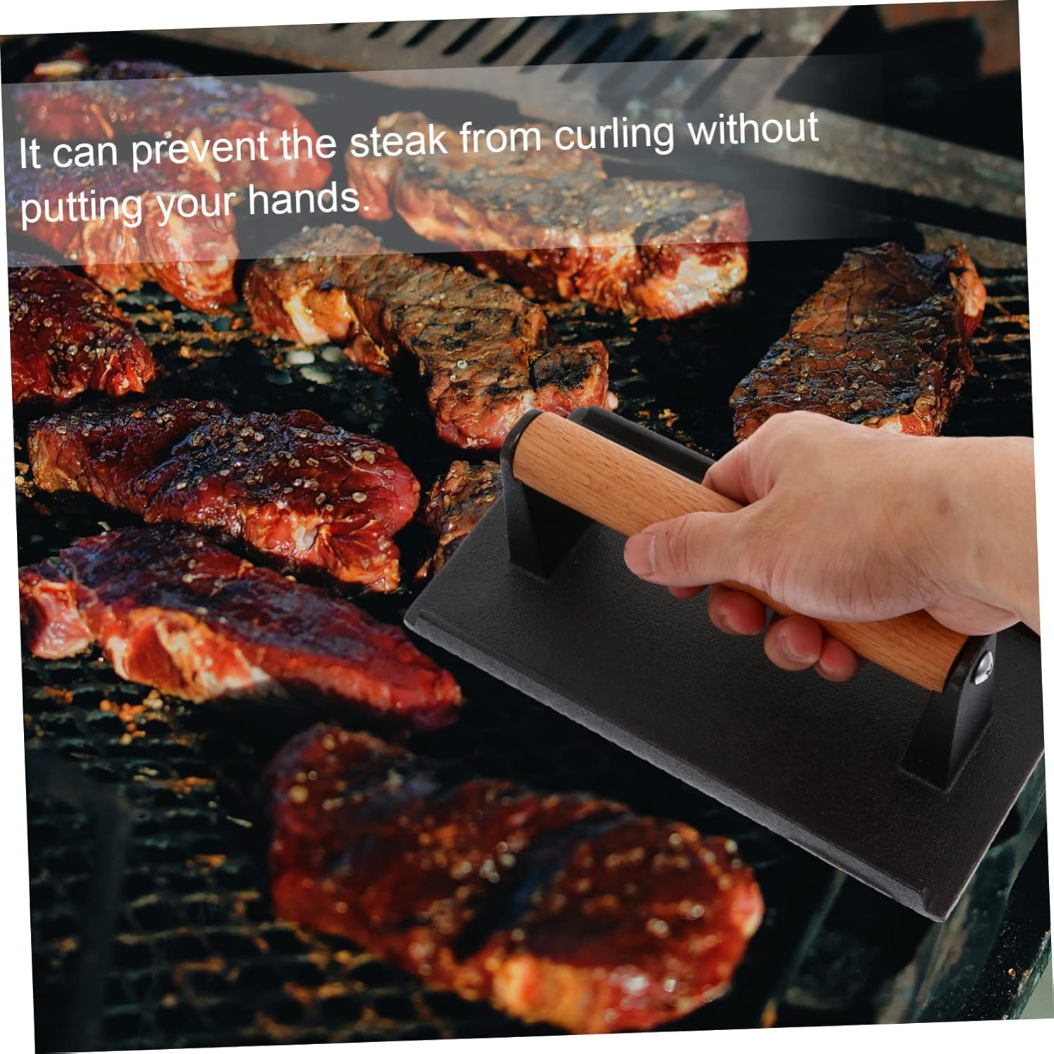 Package List 1 plate Characteristics -Size: About 21.00X11.00X6.60cm / 8.25X4.32X2.59inch wooden handle steak press -Color: Black simple burger press. -Material: Wood and cast iron press meat -This pressing plate of appropriate weight out extra oils/fat from the food for healthy cooking stylish press -This humanized wooden handle has desirable thermal insulation for preventing hand burns steak press. -Efficient cooking, you can exert pressure to make food complete cooking faster while adding a unique flavor bacon press -This handle has an ultra-wide shape that increases the stress area for uniform distribution of pressure hand-held BBQ -It can apply sufficient weight to keep the food close to the heated surface for evenly heating the food practical pancake Goods Descriptionpractical pancake plate It can be a good helper when cooking bacon, steak, burger meat and more.hand-held grill comes a practical and durable steak press plate manufactured with cast iron and wood materials, durable and sturdy for use.wooden handle steak press plate Do not hesitate to take it home!