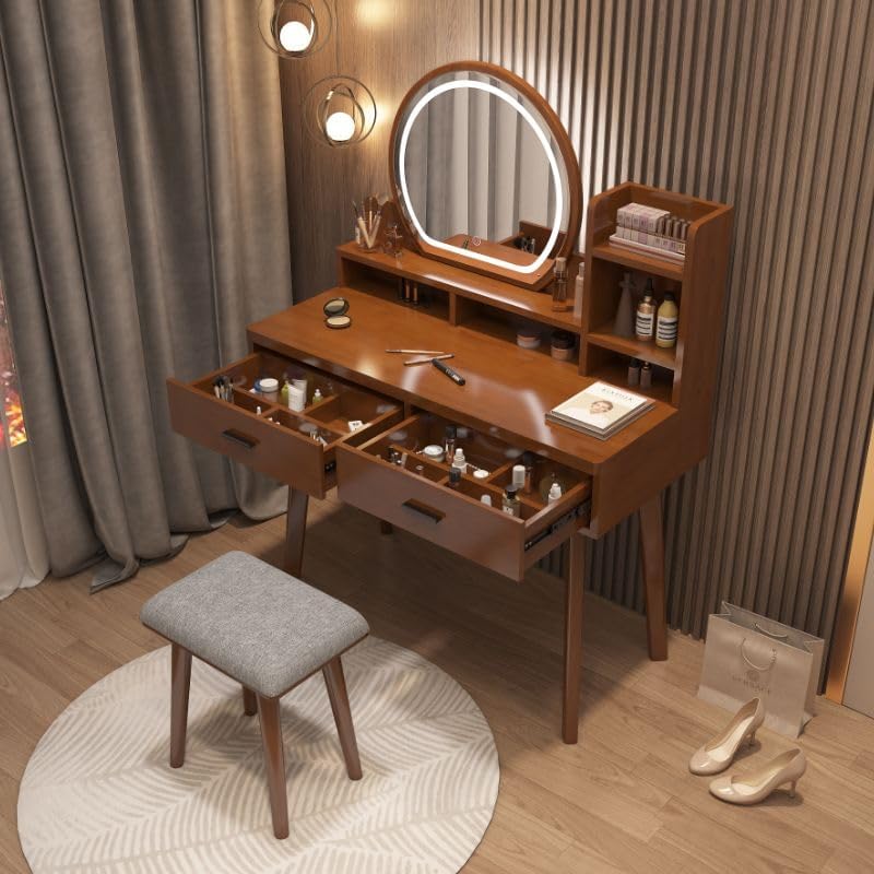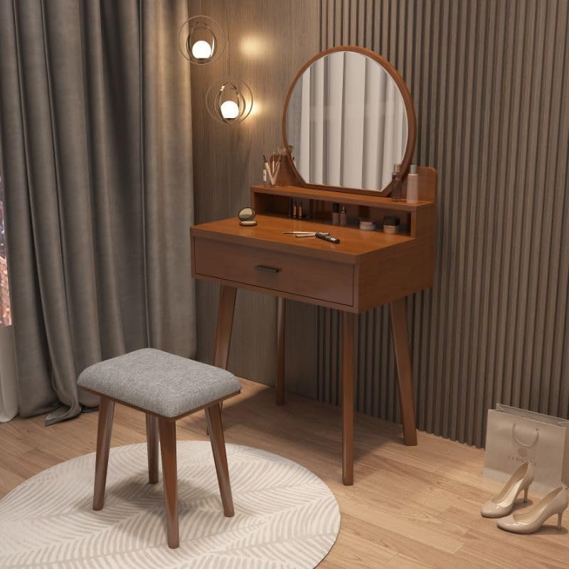 KWOKING FurnitureKWOKING is committed to creating first-class products and bringing comfortable home for customers. We pursue the harmony between man and nature. We will offer you high quality products with reasonable prices.Specifications:Color: Nut-Brown ,White ,Walnut/ White ,NaturalSize of Vanity:24"L x 16"W x 53"H ,16"L x 16"W x 47"H ,31"L x 16"W x 53"HMaterials: RubberwoodGross Weight: 33 - 77 lbsVanity Type: Makeup Vanity & Mirror & StoolsFeature: A Mirror Included, A Stool Included, Drawers IncludedOverall Length - Side to Side: 23.5" (60 cm) ,16" (40 cm) ,31.5" (80 cm)Overall Width - Front to Back: 16" (40 cm)Table Height - Top to Bottom: 53" (135 cm) ,47" (120 cm)Package Contents:1 x Makeup Vanity & Mirror & Stools1 x Assembly Kit1 x InstructionKWOKING Notes:This product is intended for home use only.Children should not climb on or play with the product for safety reasons.