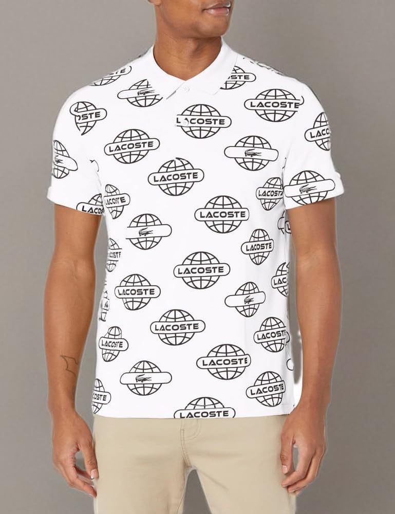 The Lacoste Movement Polo blends sophisticated style and modern comfort, featuring a unique globe print, a super-light stretch cotton blend for ultimate breathability, and signature details like the iconic crocodile and rubber buttons for a truly refined travel-ready look.